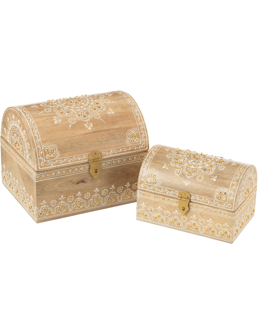 Lot de 2 Boites de rangement déco ethnique chic Rectangulaire Bois de manguier Naturel Perle Orange Sahéra