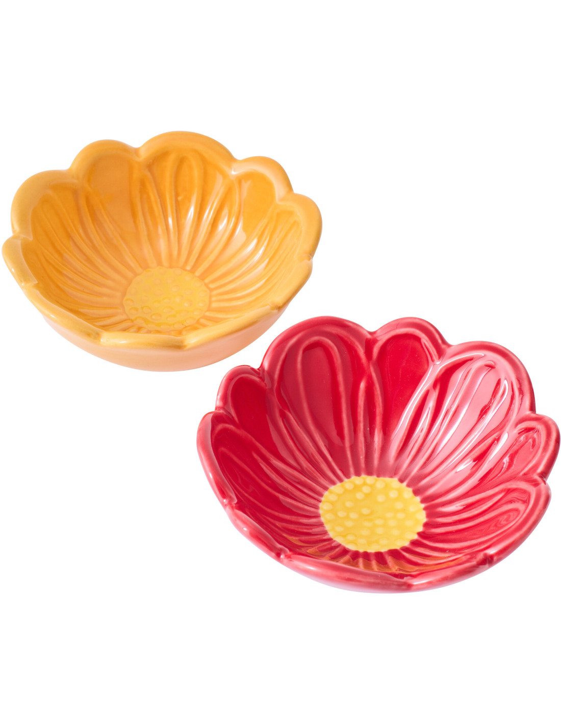 Lot de 2 Bols originaux Fleur 10 cm Porcelaine Jaune orcre Rouge foncé Bloemlust