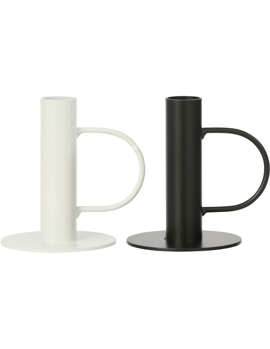 Lot de 2 Bougeoirs design minimalistes avec poignée H 10 cm Métal Blanc Noir Haloa