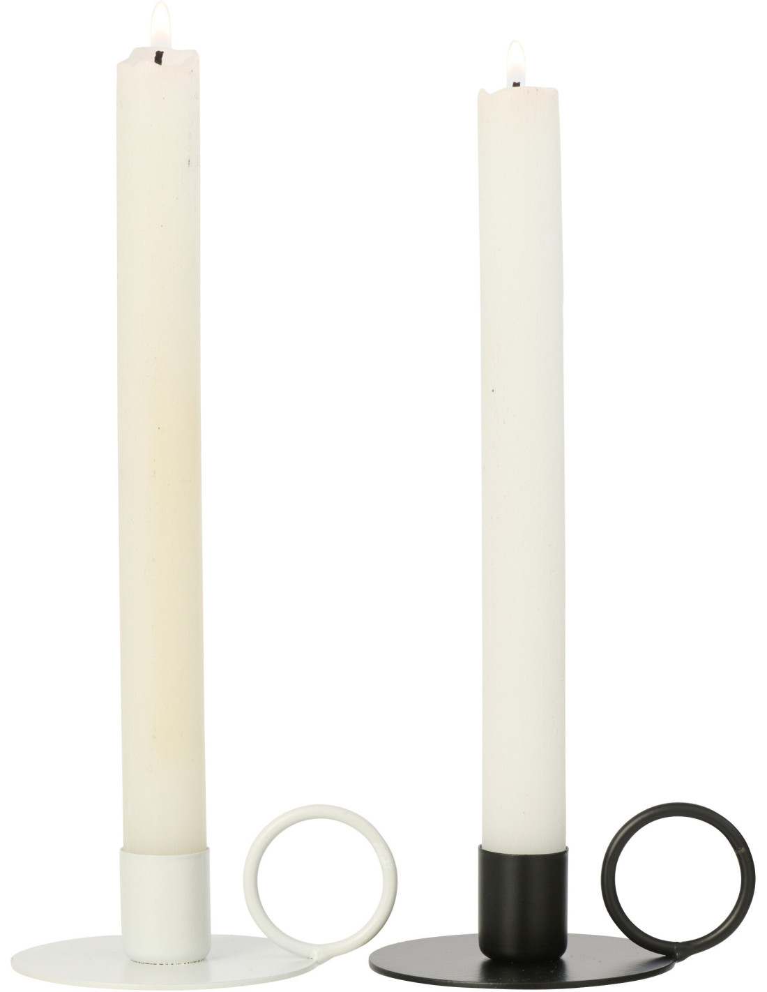 Lot de 2 Bougeoirs design minimalistes avec poignée H 4 cm Métal Blanc Noir Haloa