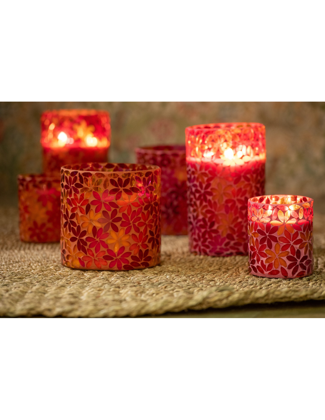 Lot de 2 Bougies parfumées longue durée Mélange floral Tender Rose 55 H Verre Rose Mosaïque Motif fleurs Cire Floressa