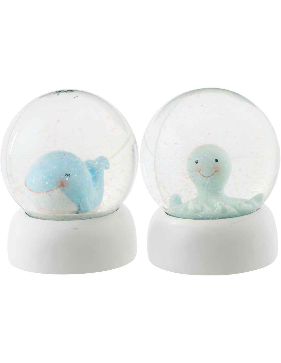 Lot de 2 Boules à neige Pieuvre & Baleine H 9 cm Résine Bleu clair Vert clair Bloopa