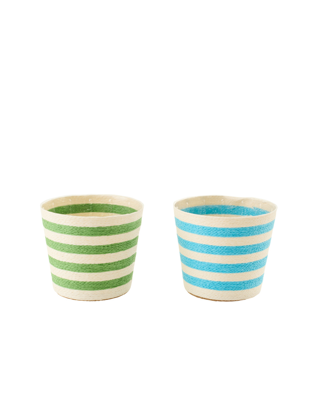 Lot de 2 Cache-pots modernes D 17 cm Papier Bleu azur Vert Tressé Motif lignes Dorinel