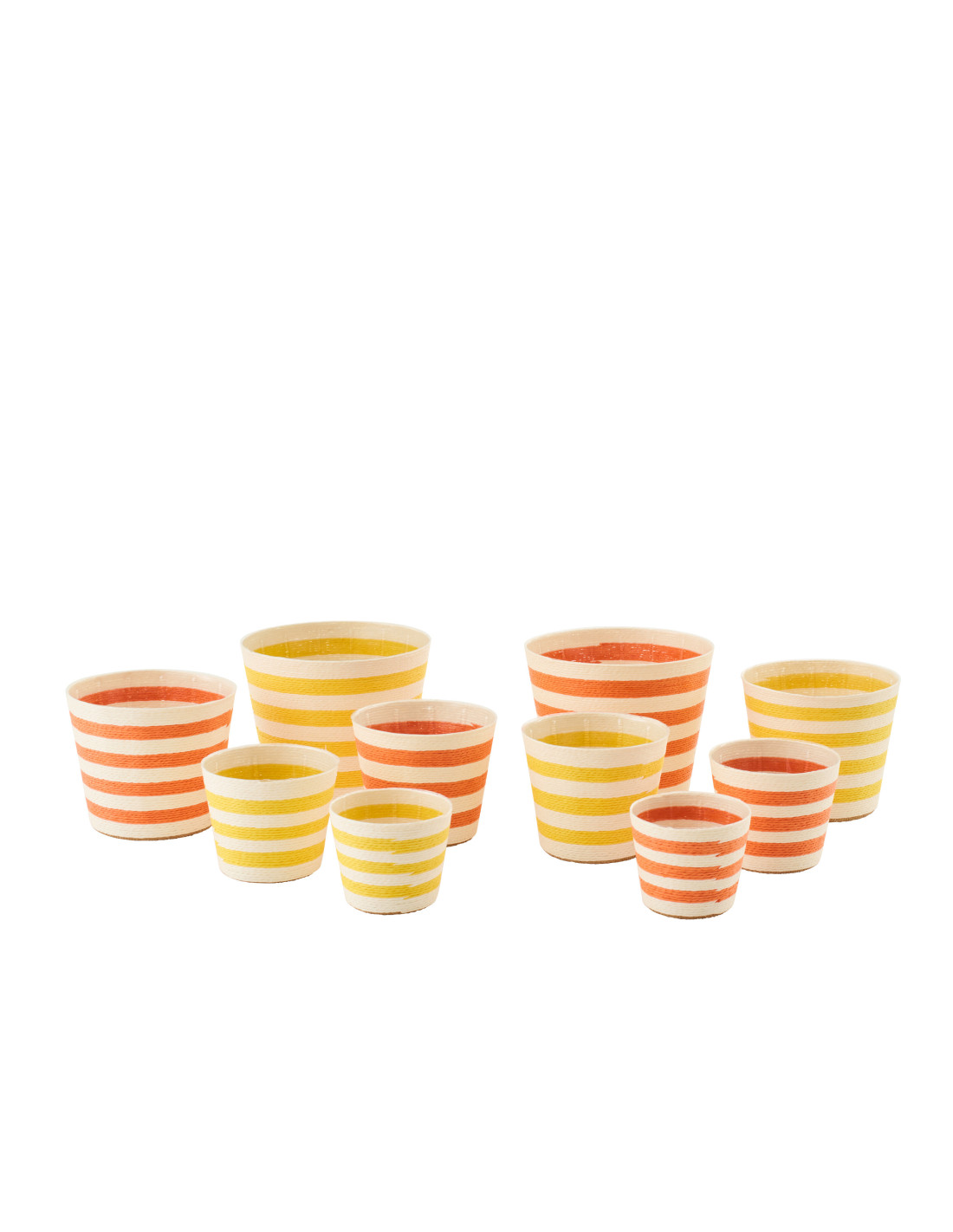 Lot de 2 Cache-pots modernes D 21 cm Papier Orange Jaune Tressé Motif lignes Dorinel