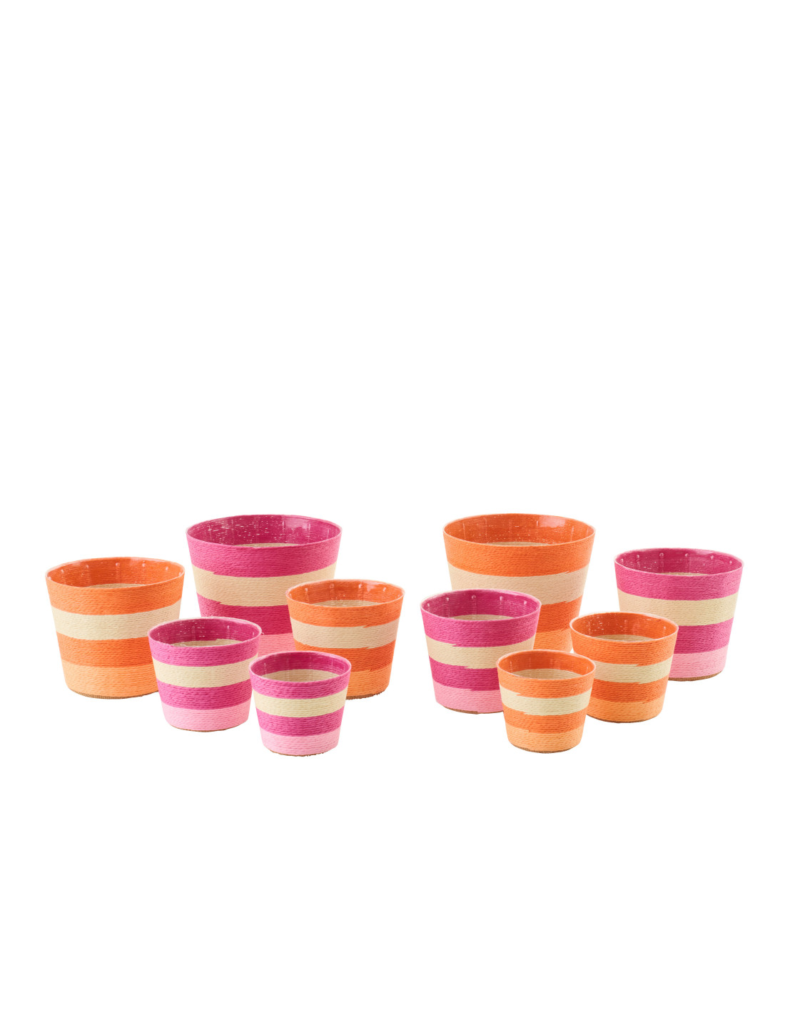 Lot de 2 Cache-pots modernes D 21 cm Papier Rose Orange Tressé Motif lignes Dorinel