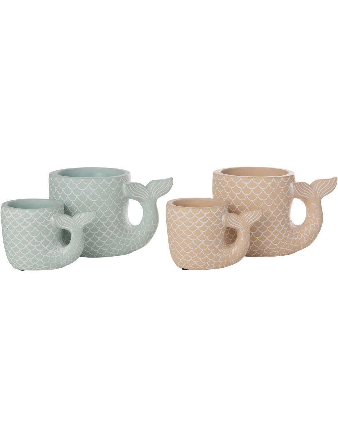 Lot de 2 Cache-pots originaux Queue de sirène Rond S 16 cm Ciment Bleu clair Beige Arielle