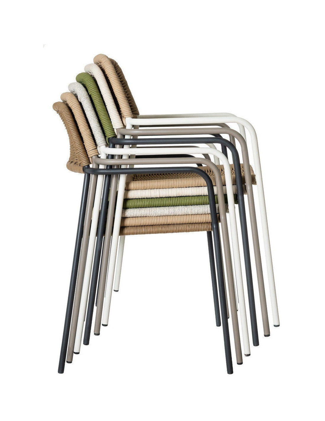 Lot de 2 Chaises de jardin design Corde Vert Tressé Métal Noir graphite Milos