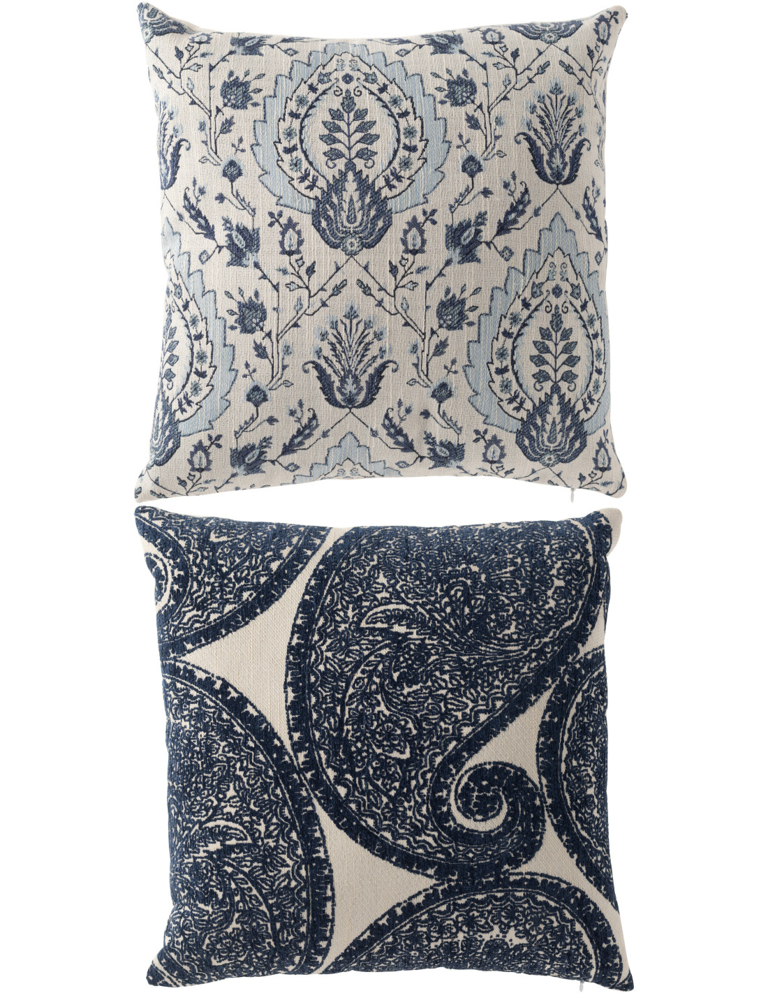 Lot de 2 Coussins indiens chic Carré 45x45 Tissu Bleu Blanc cassé Indigra