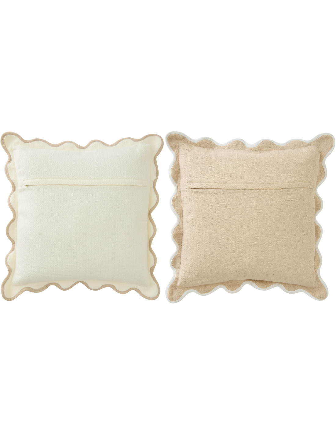 Lot de 2 Coussins ondulés style bord de mer Carré 45x45 Coton Blanc Beige Almorénia