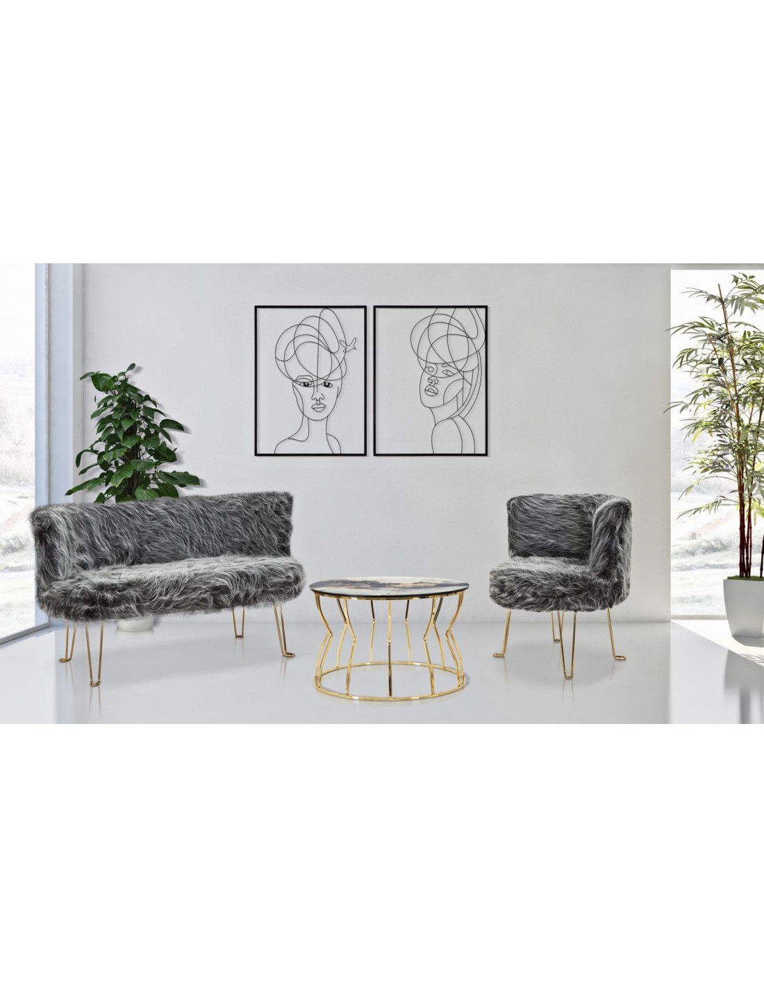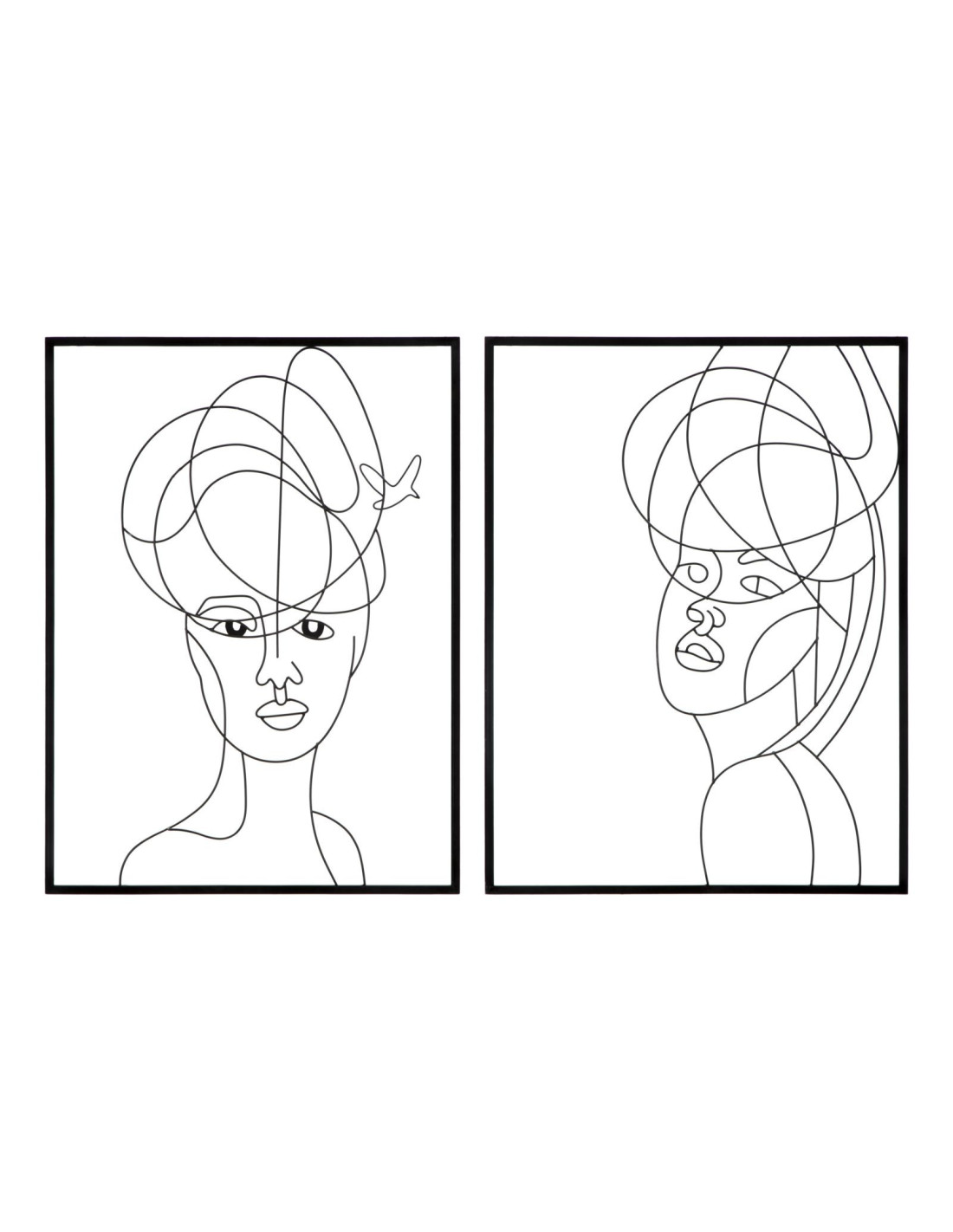 Lot de 2 Décorations murales design Visages Femmes Métal Noir Woman