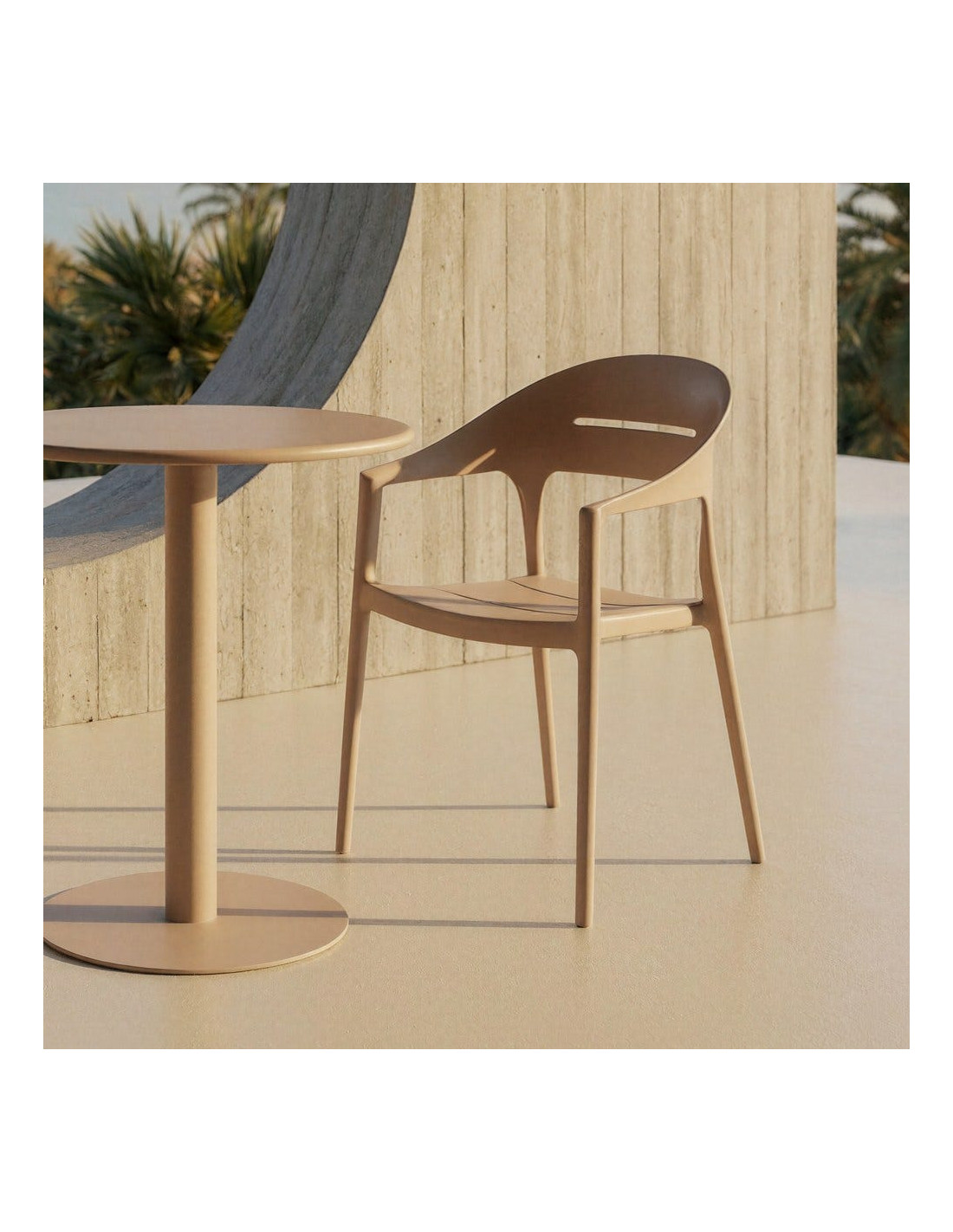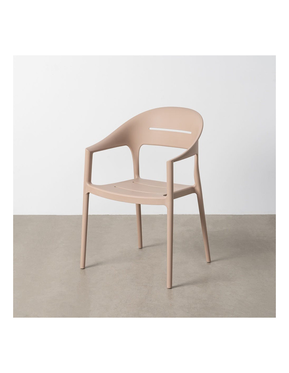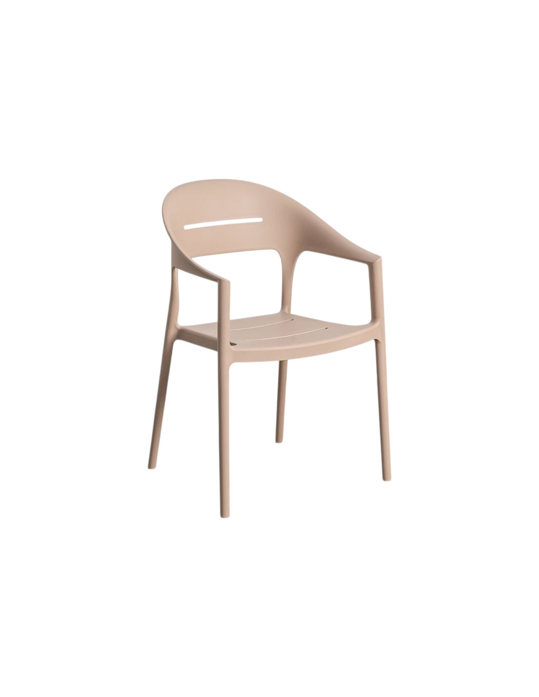 Lot de 2 fauteuils de jardin design minimaliste en polypropylène beige. Usage extérieur. Norme EN 16139. Empilables.