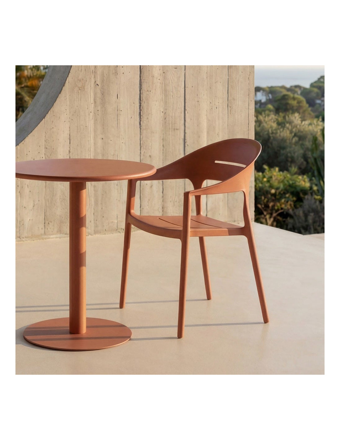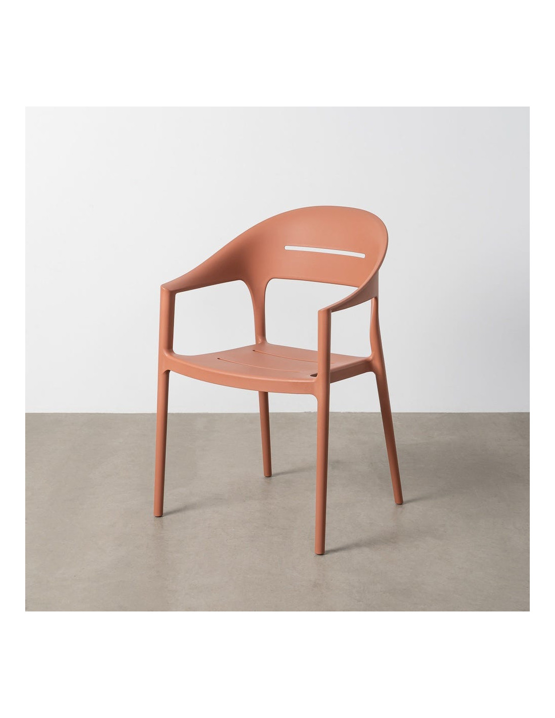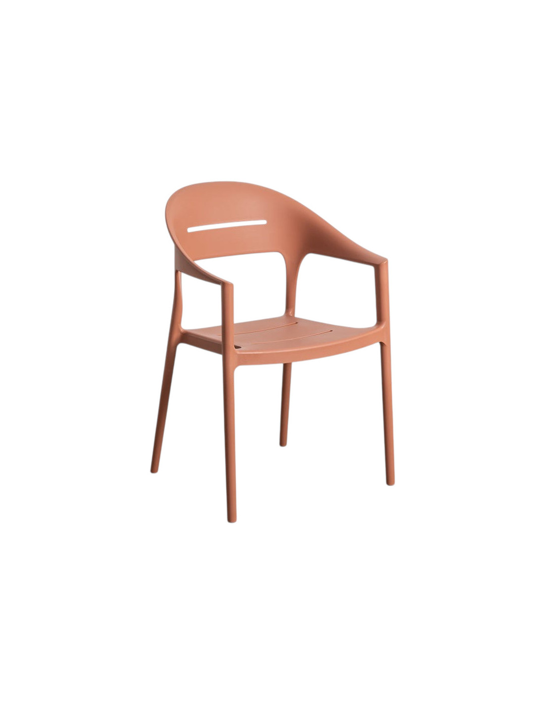 Lot de 2 fauteuils de jardin design minimaliste en polypropylène terracotta. Usage extérieur. Norme EN 16139. Empilables.