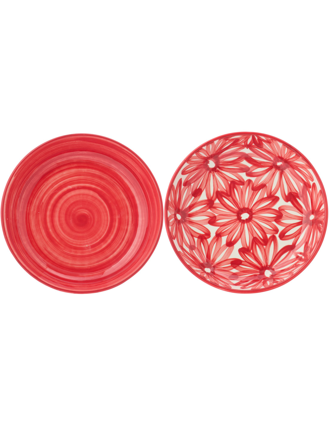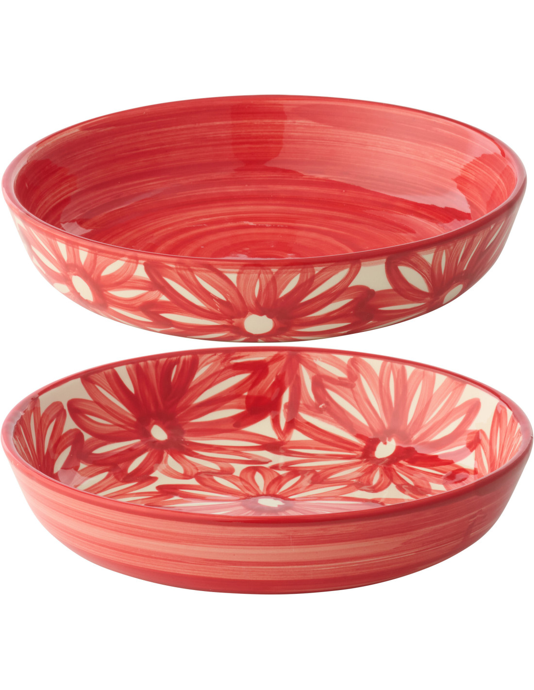 Lot de 2 Grandes Assiettes creuses style méditerranéen Ronde 25 cm Céramique Rouge Blanc Motif fleurs Flora
