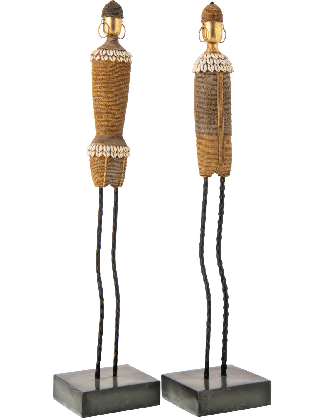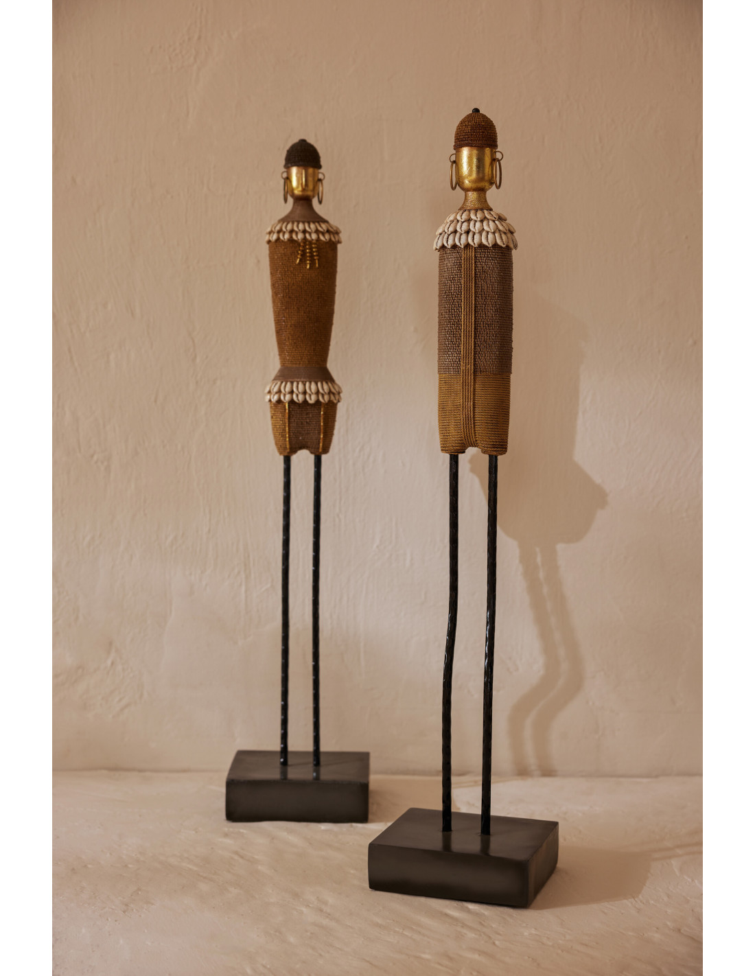 Lot de 2 Grandes Statuettes déco africaines sur pied H 70 cm Résine Beige Coquillage Blanc Nabiré
