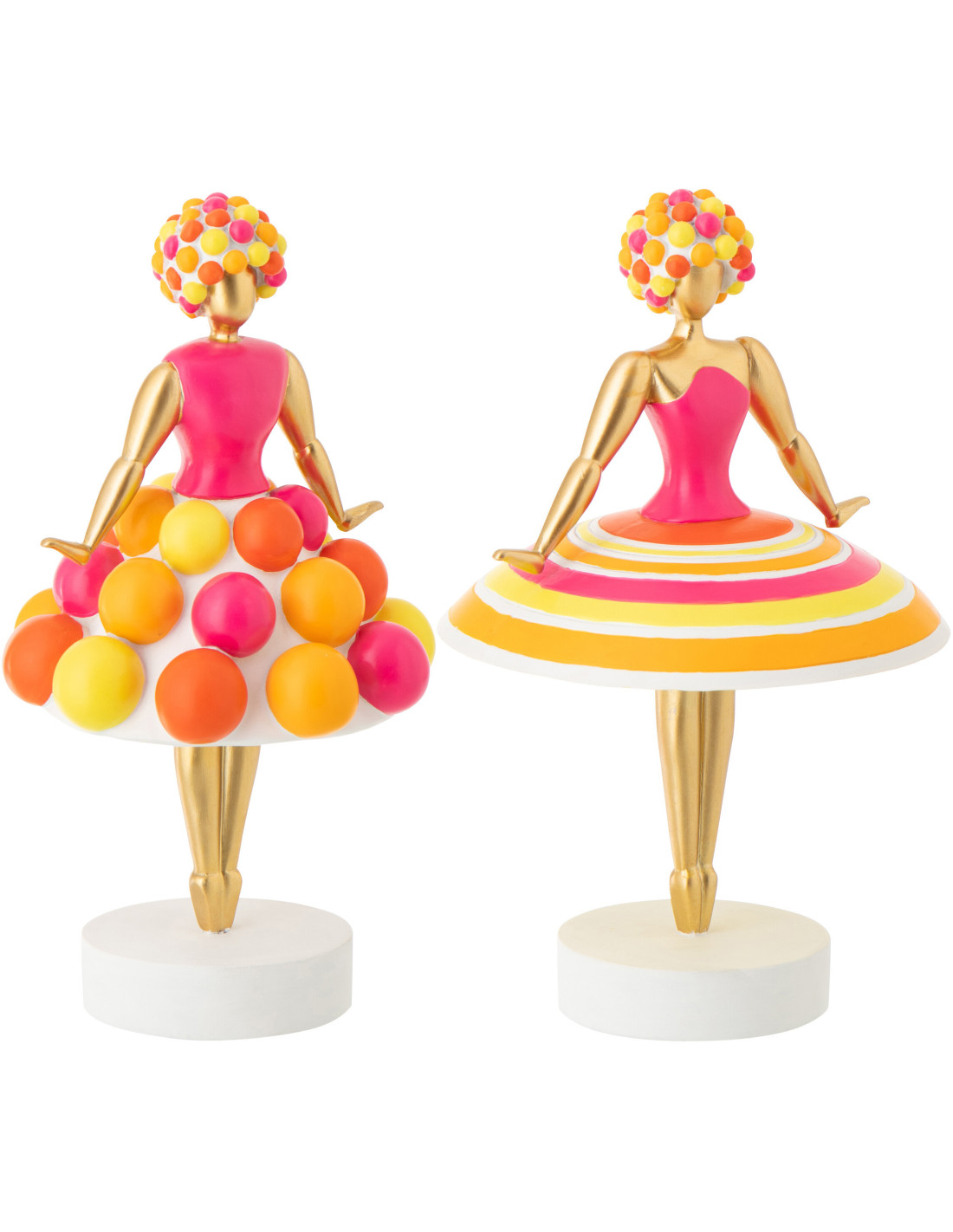 Lot de 2 Grandes Statuettes déco design Baleines H 35 cm Poudre de chaux Rose Orange Jaune Doré Dansiana