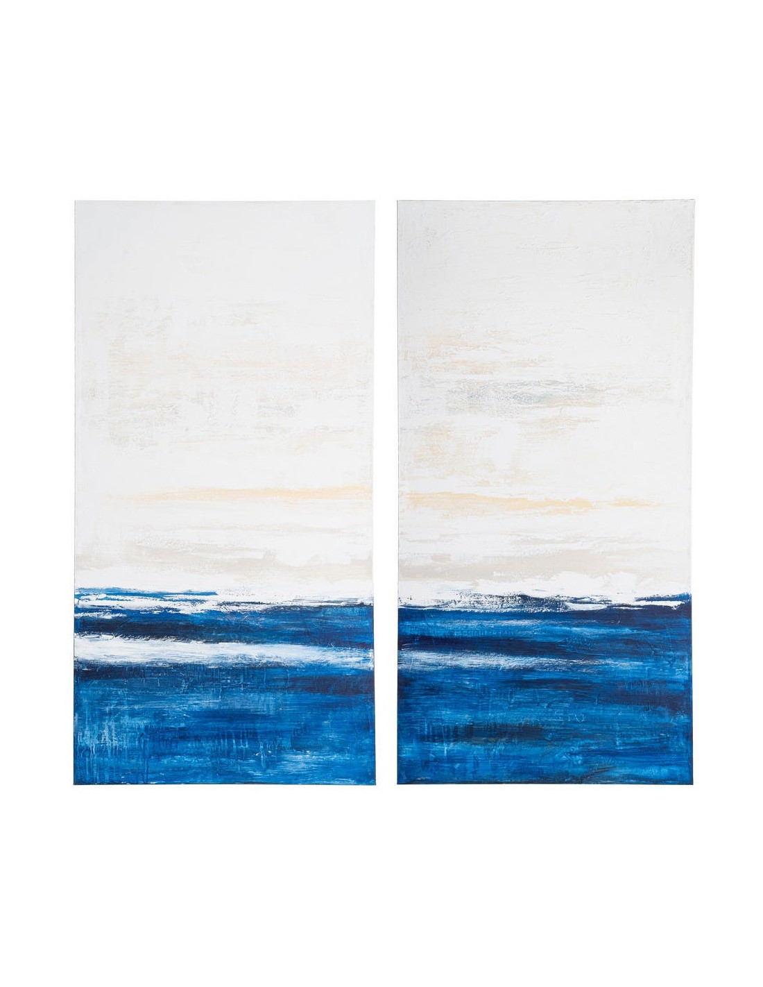 Lot de 2 Grandes Toiles murales peintes design marin 90x180 Bleu Beige Horizéna