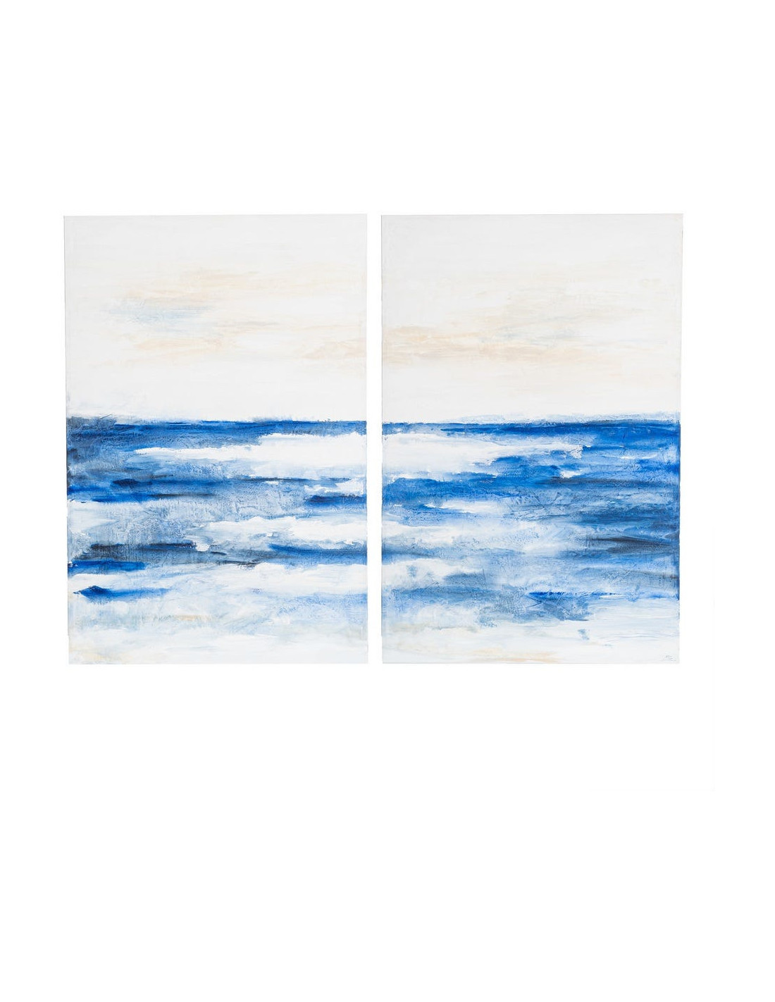 Lot de 2 Grandes Toiles murales peintes Motif bord de mer 80x120 Blanc cassé Beu Horizéa