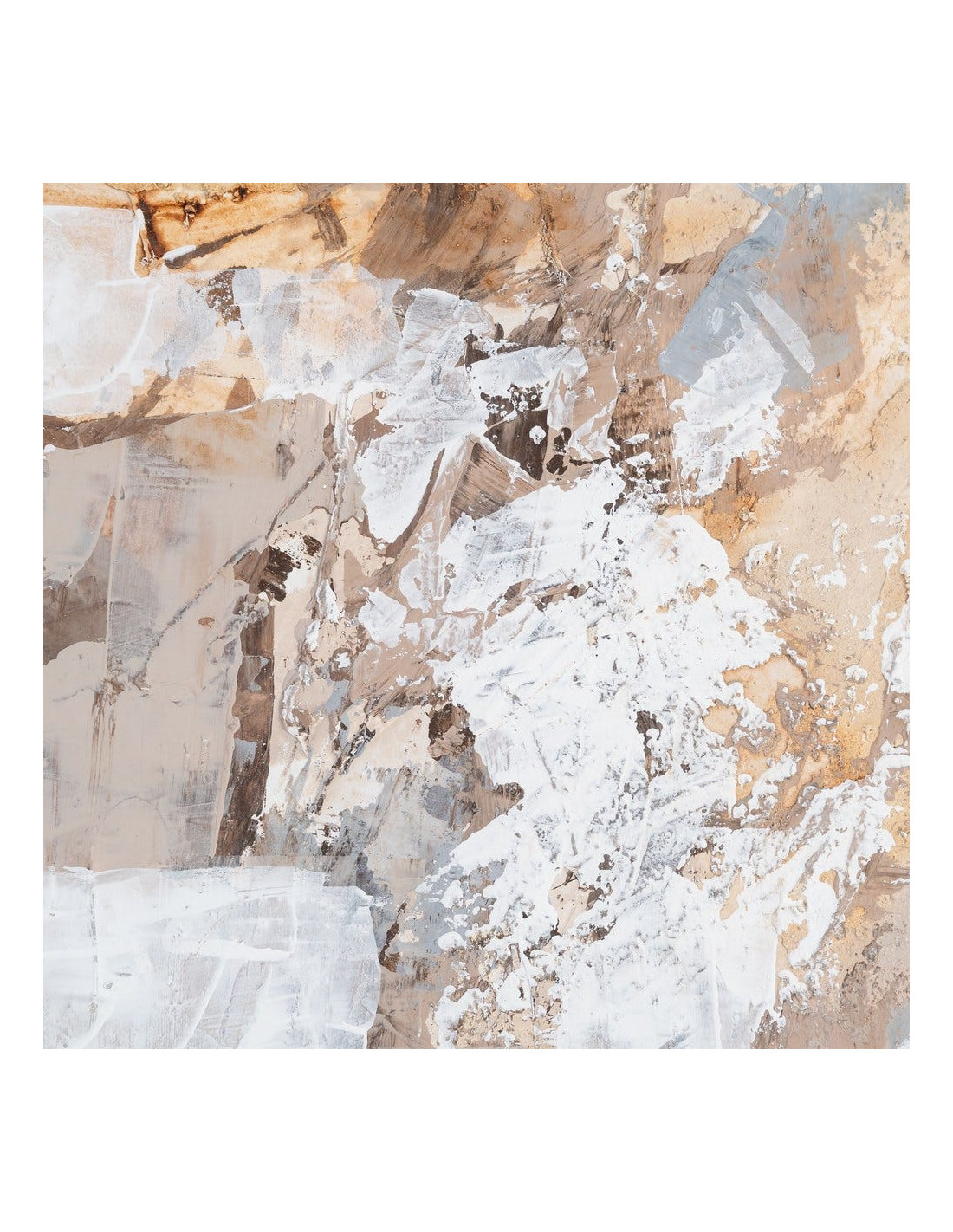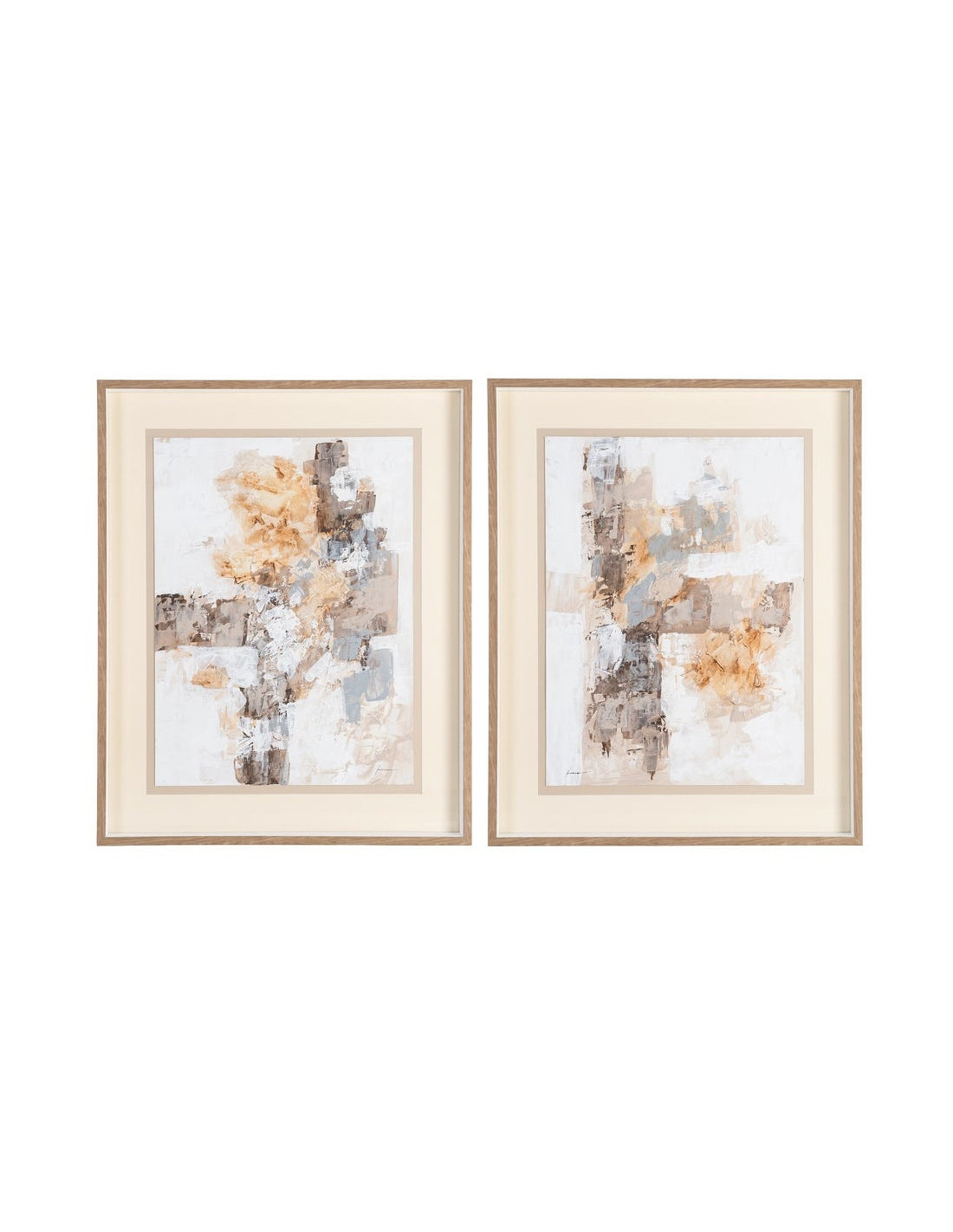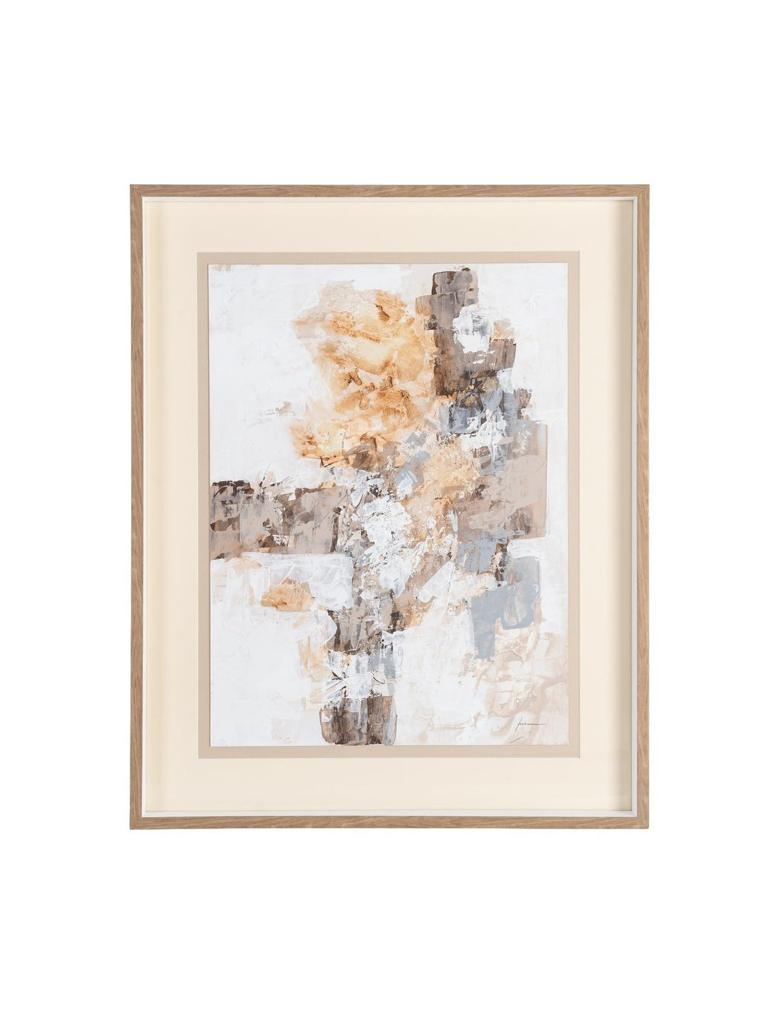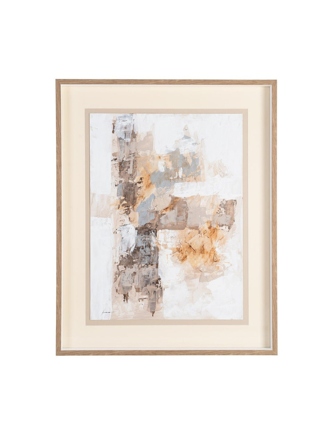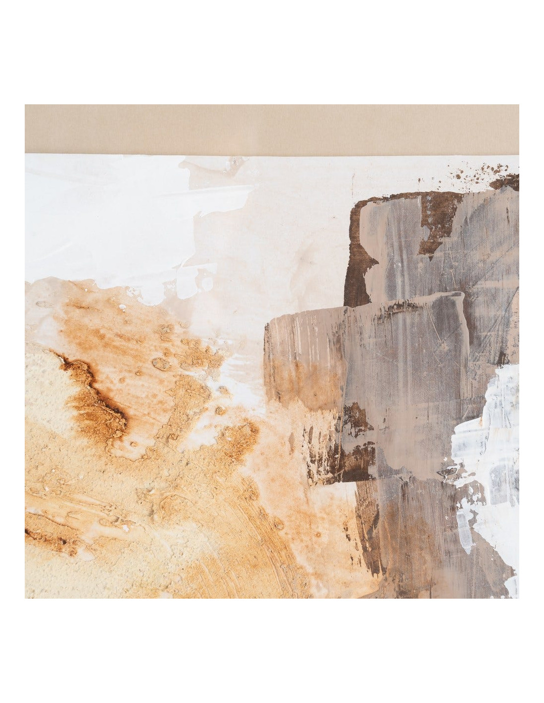 Lot de 2 Grandes Toiles murales peintes sous verre motif abstrait Cadre en bois d'ayous naturel 80x100 Minéra