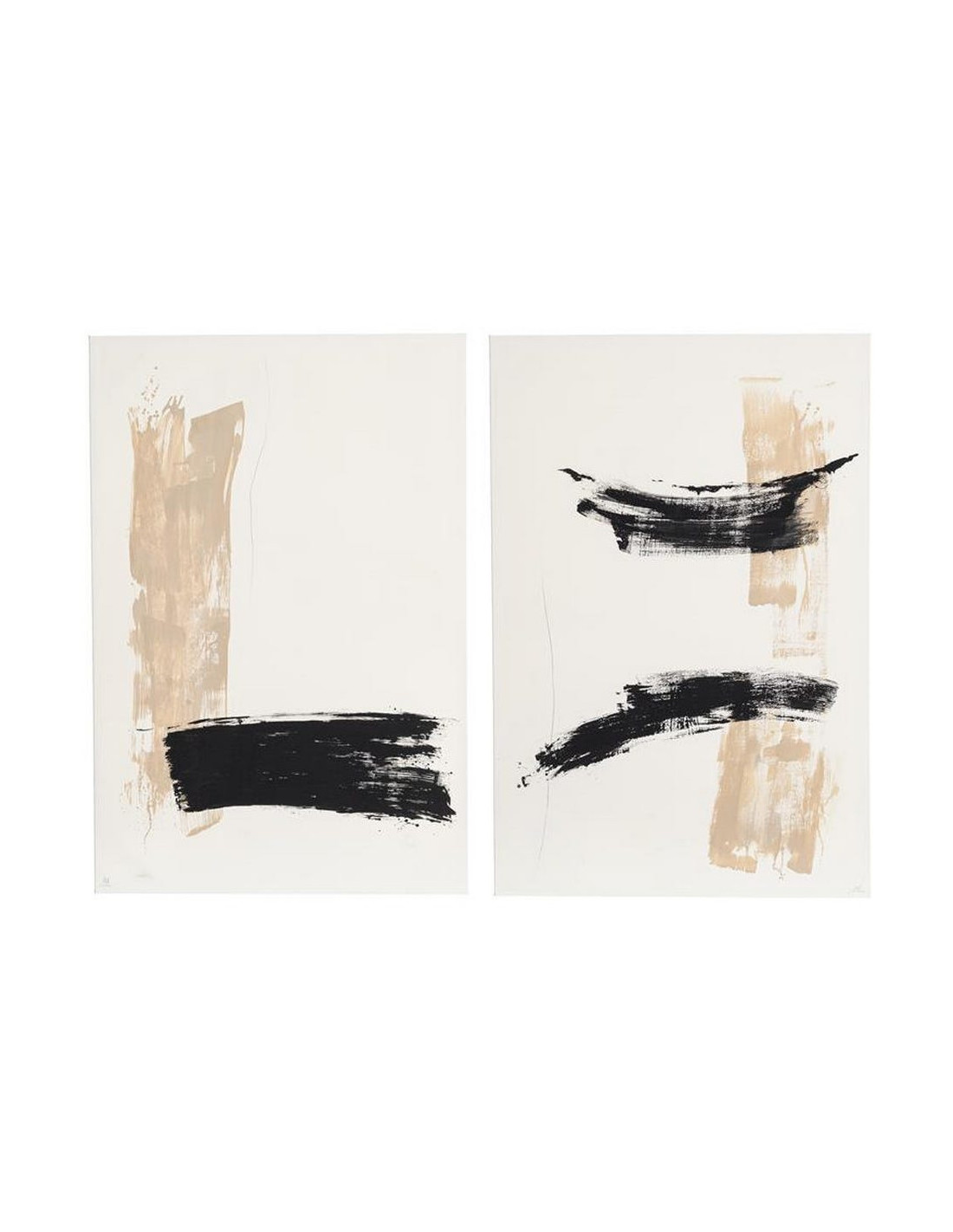 Lot de 2 Grandes Toiles murales peintes style abstrait 80x120 Beige Noir Brutéa