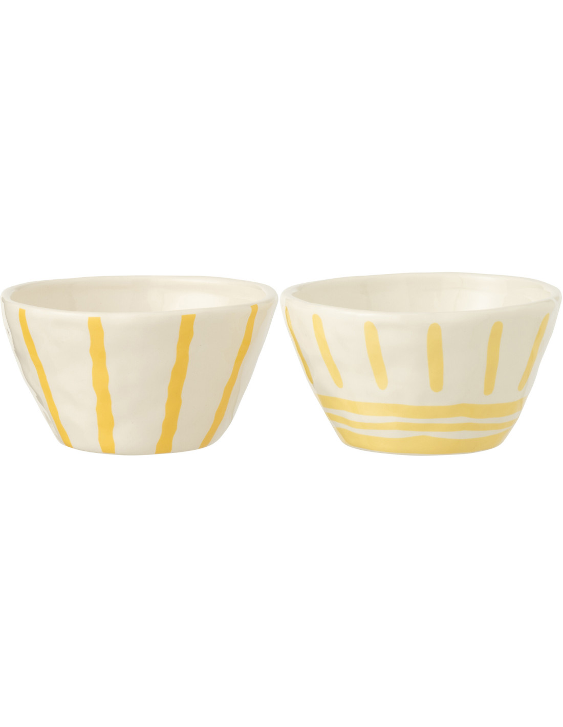 Lot de 2 Grands Bols style méditerranéen Organique 23 cm Dolomite Blanc Jaune Motif lignes Solawa