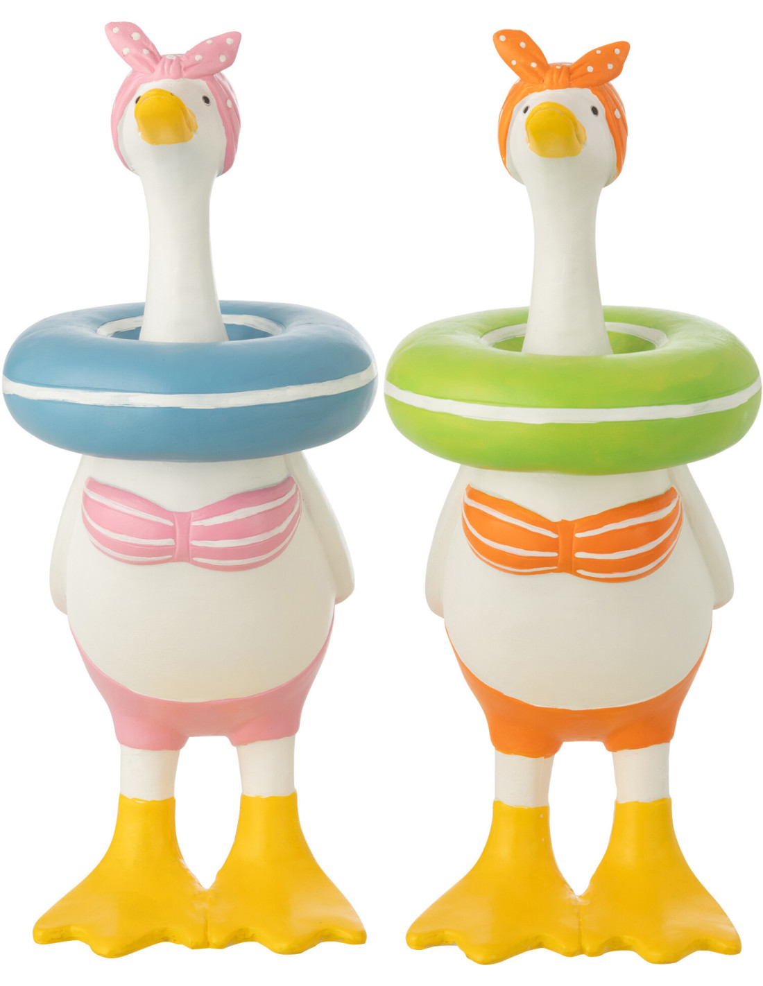 Lot de 2 Grands Canards déco design Baigneuses H 40 cm Résine Multicolore Zonduk