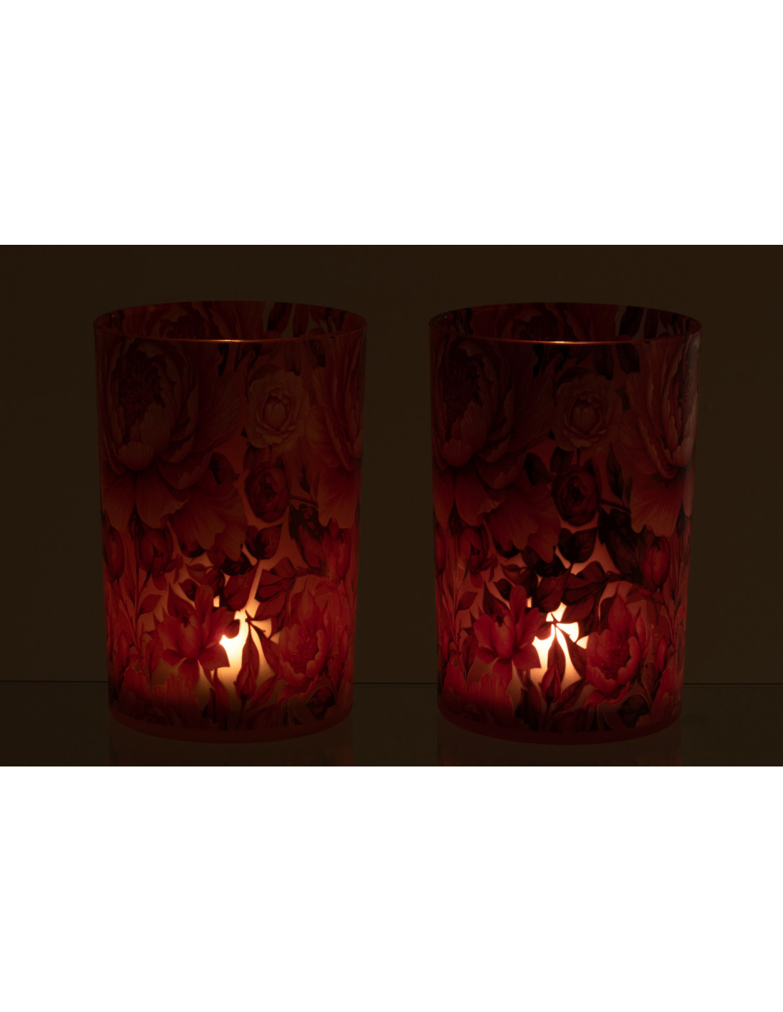 Lot de 2 Grands Photophores shabby chic Verre Orange Rose Motif fleurs Rosaria