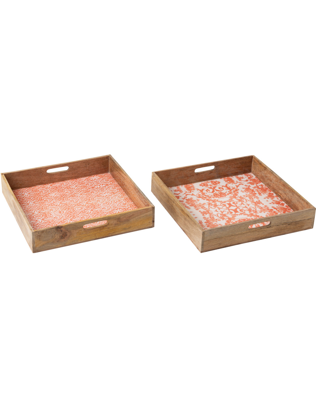 Lot de 2 Grands Plateaux Campagne chic Carré 50 cm Bois de manguier Orange Blanc Naturel Verdeno