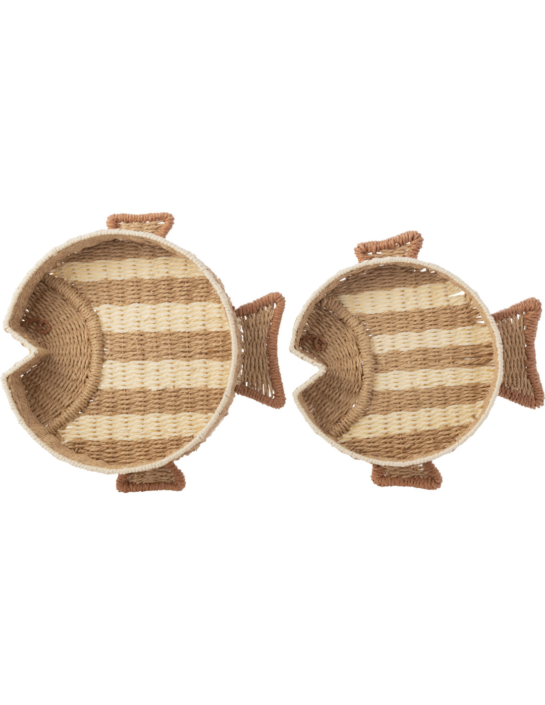 Lot de 2 Grands Plateaux déco Poissons Papier Naturel Blanc Tressé Métal Tramea