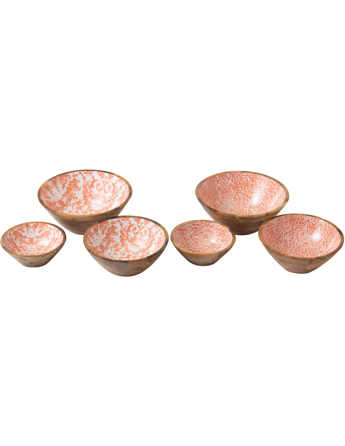 Lot de 2 Grands Saladiers Campagne chic Rond 30 cm Bois de manguier Orange Blanc Naturel Verdeno