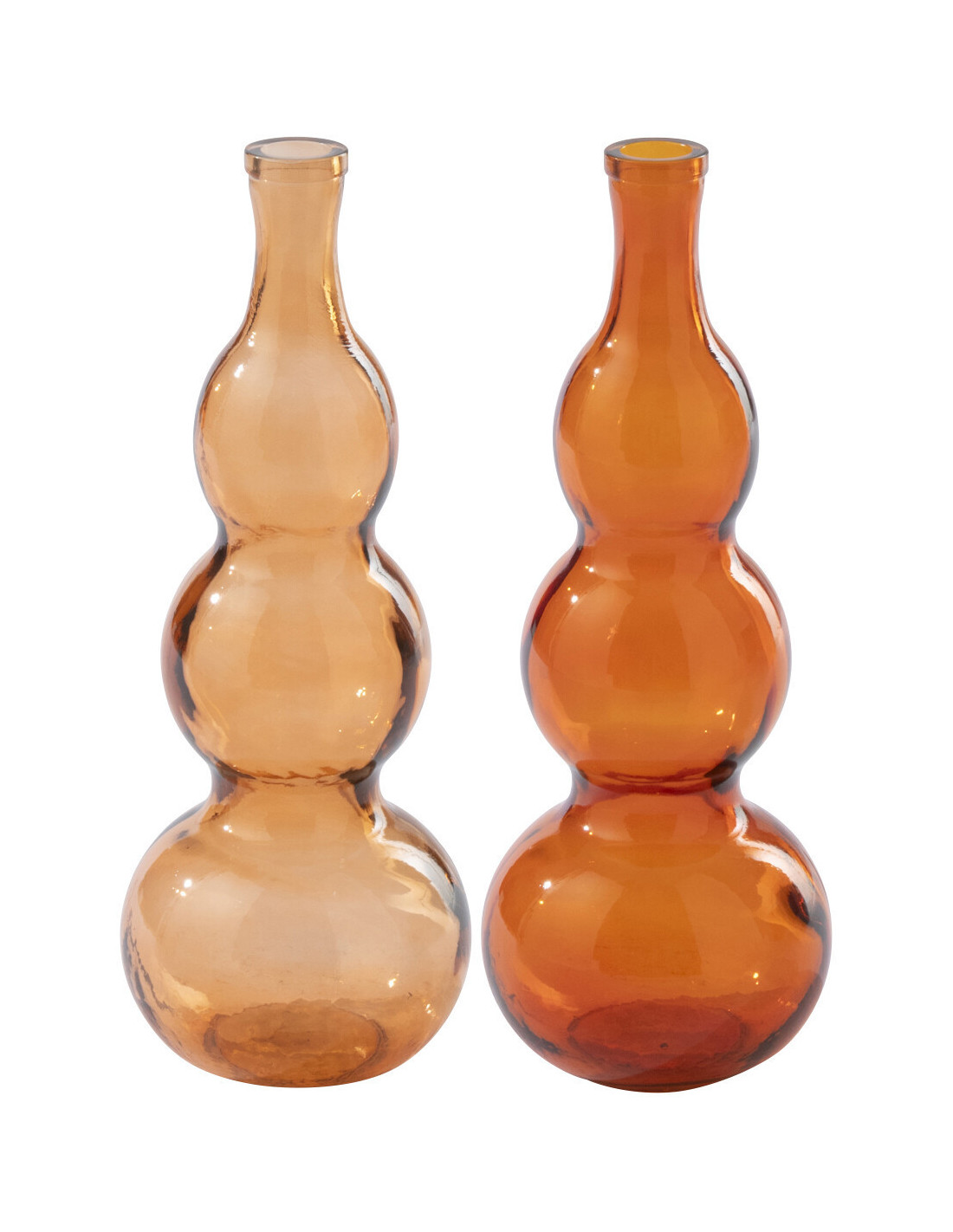 Lot de 2 Grands Vases style Seventies Organique H 48 cm Verre Orange clair Orange foncé Ambrélio
