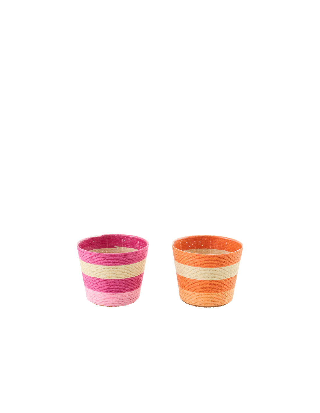 Lot de 2 Petits Cache-pots modernes D 11 cm Papier Rose Orange Tressé Motif lignes Dorinel