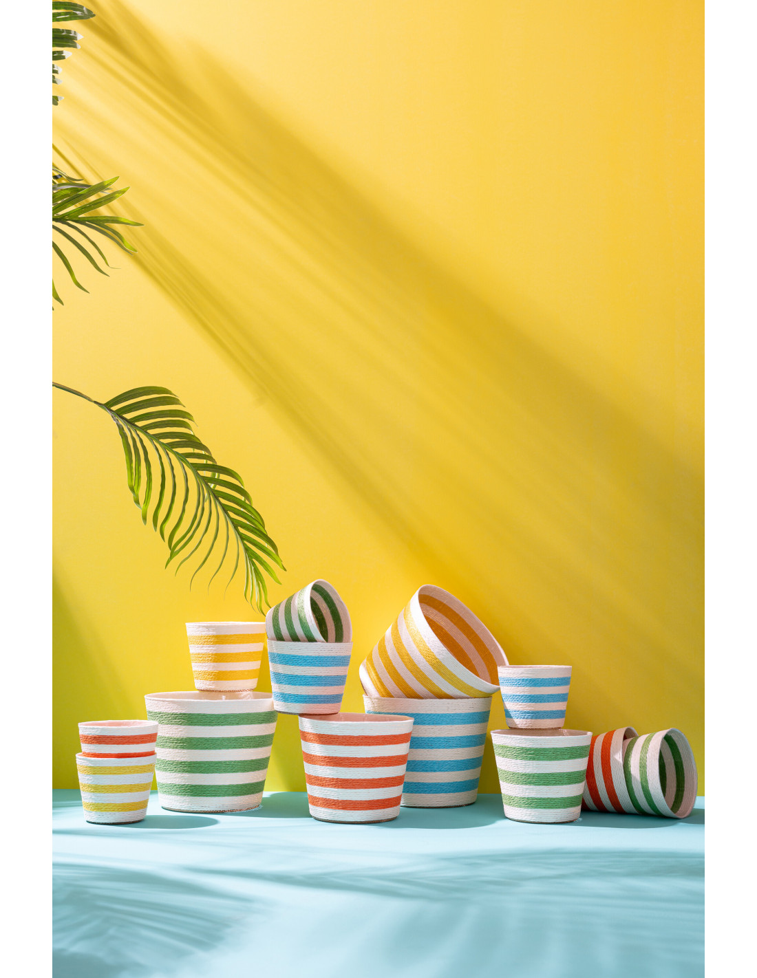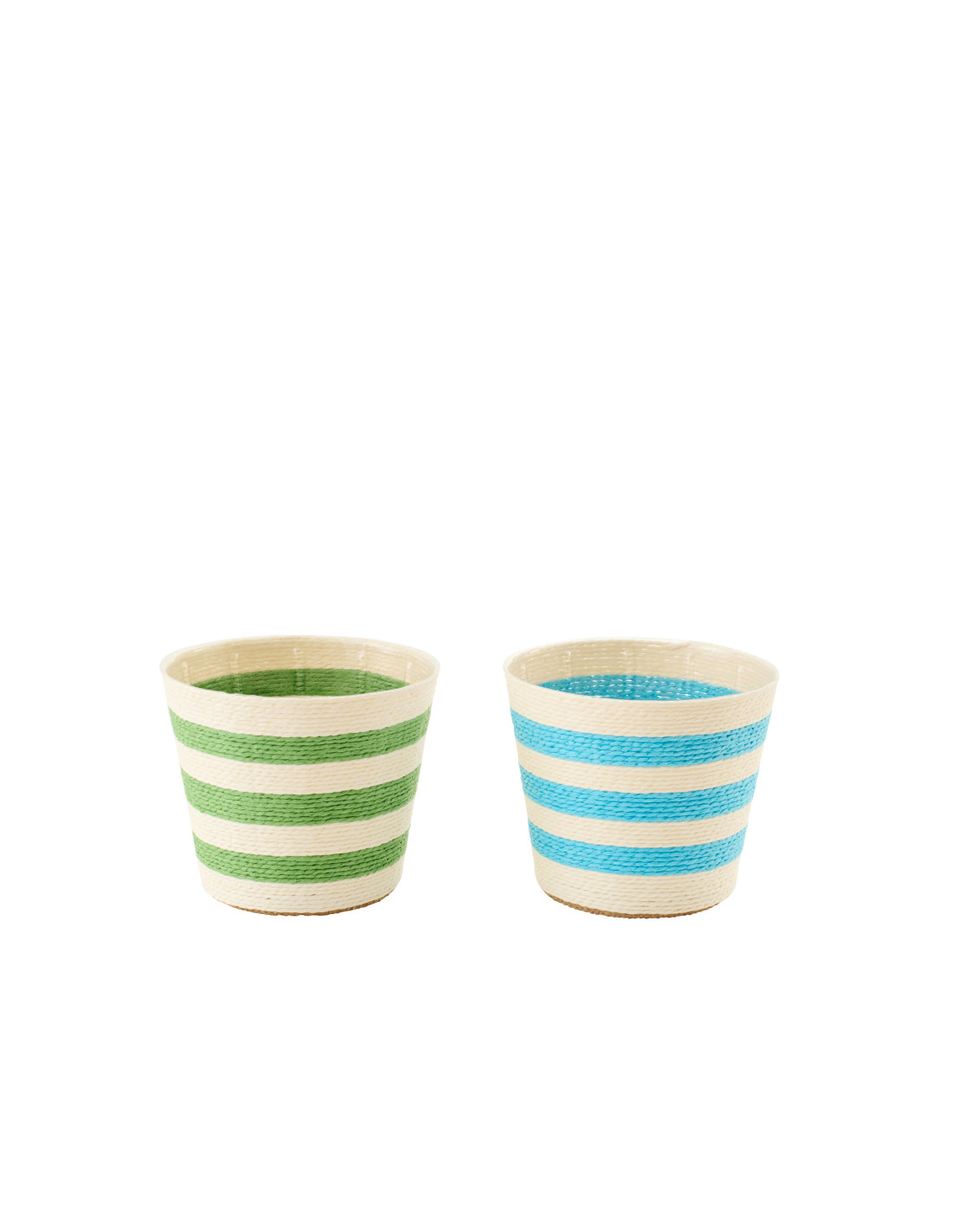 Lot de 2 Petits Cache-pots modernes D 15 cm Papier Bleu azur Vert Tressé Motif lignes Dorinel