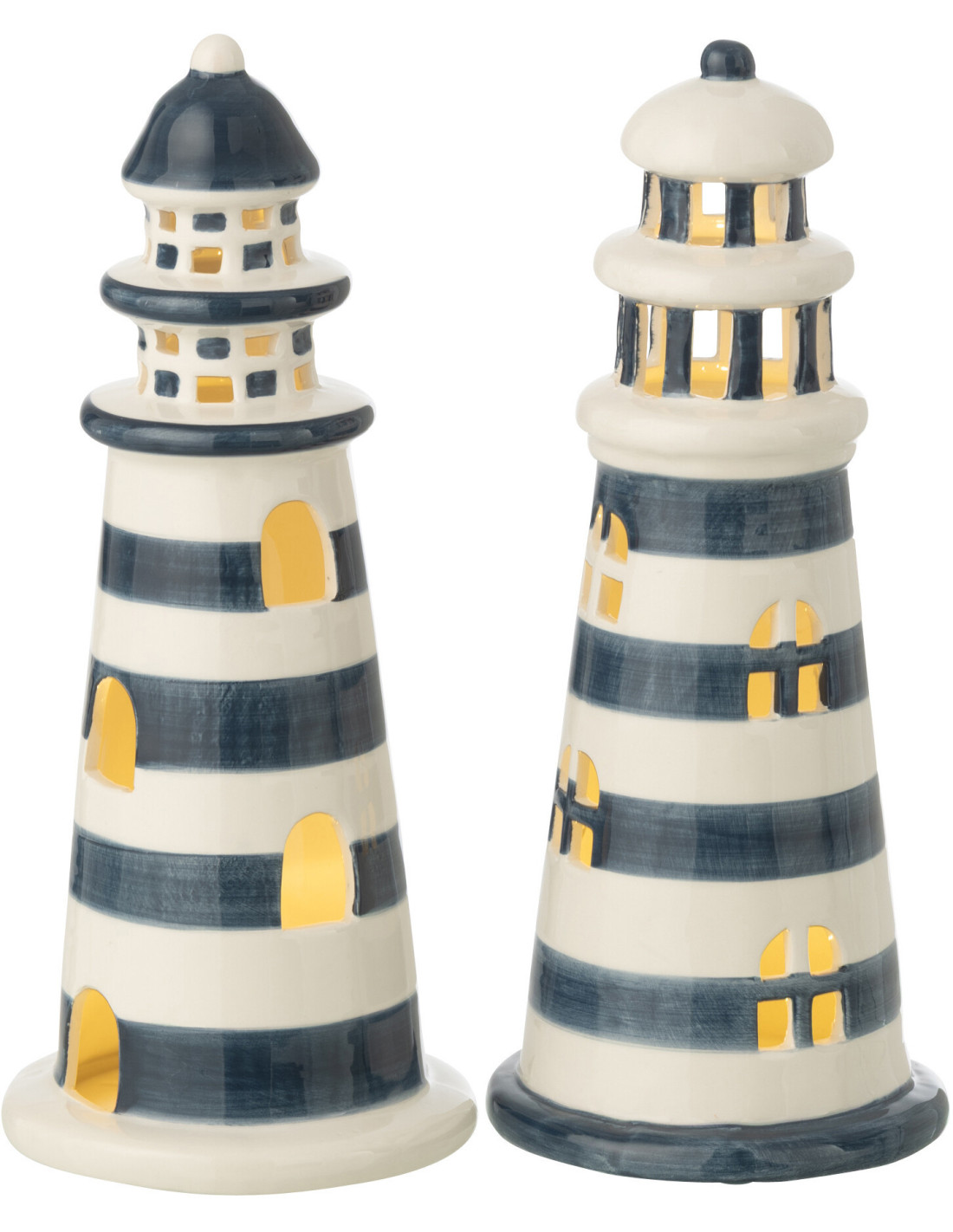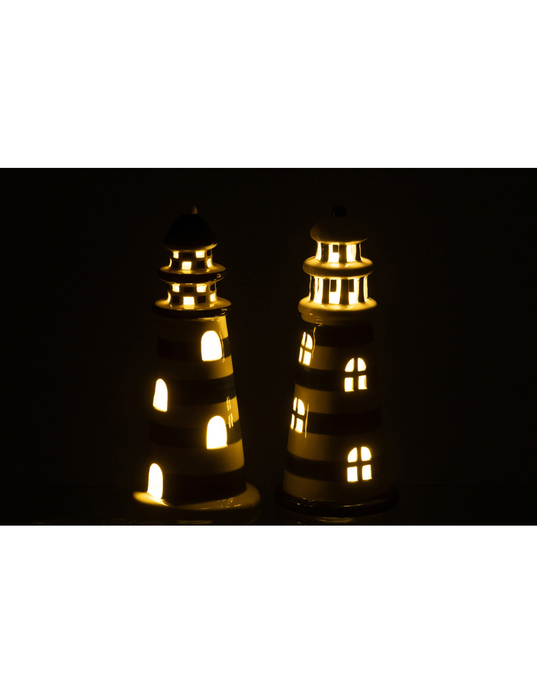 Lot de 2 Phares déco lumineux Led H 26 cm Porcelaine Bleu foncé Blanc Kusthuis