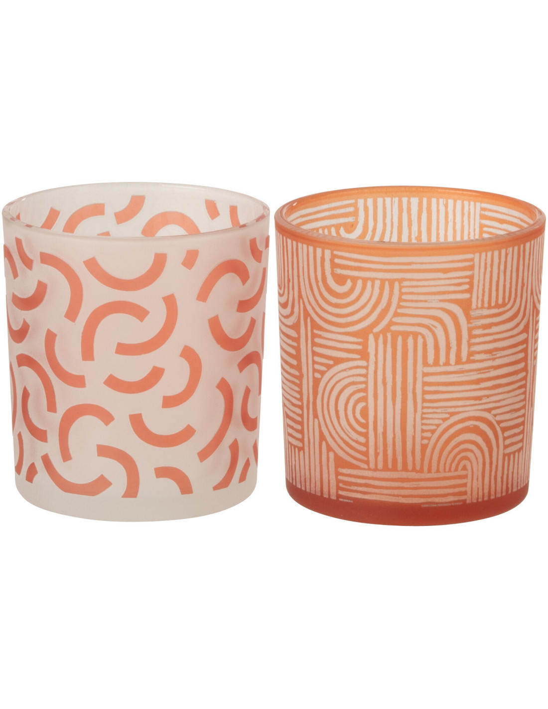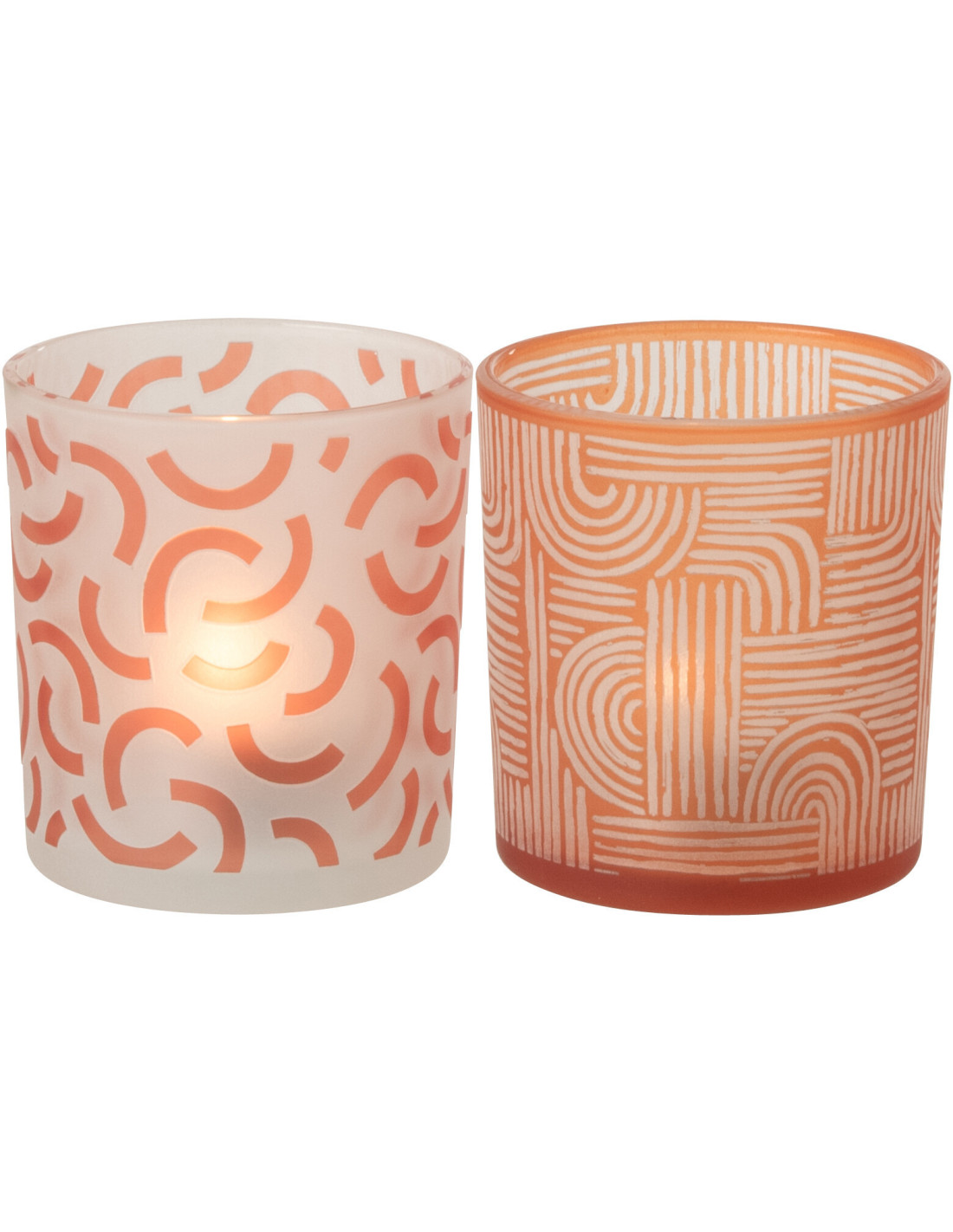 Lot de 2 Photophores art déco Verre Orange Blanc Motif graphique Oralya