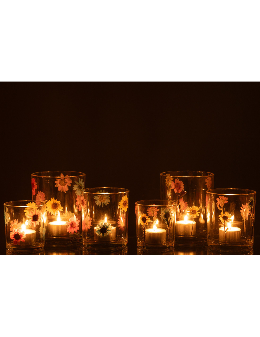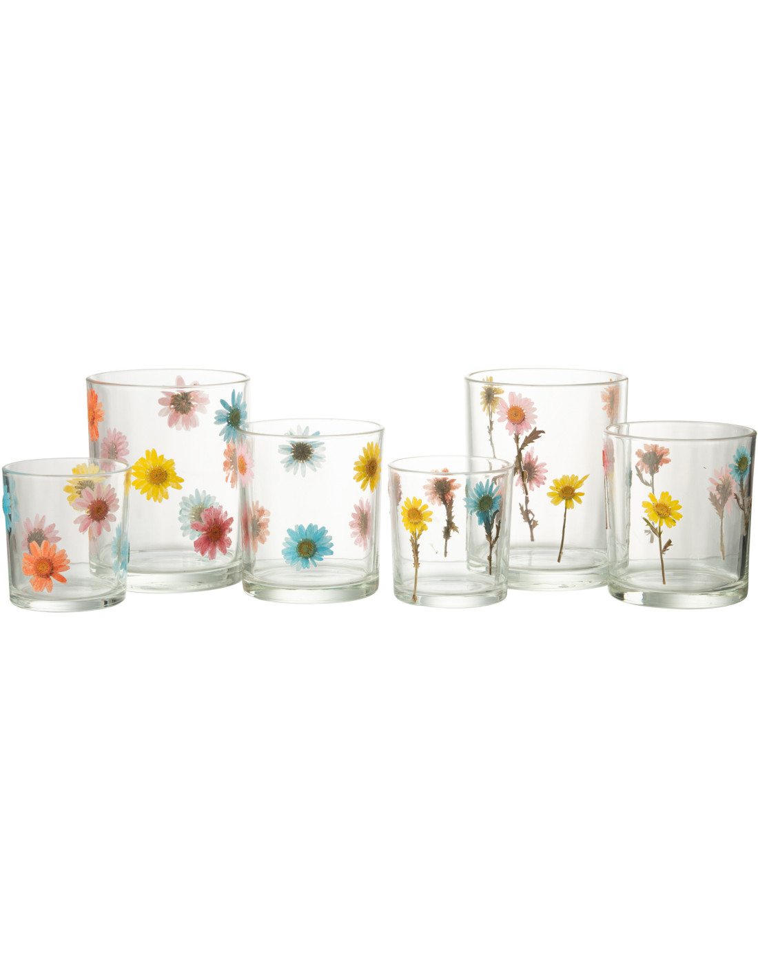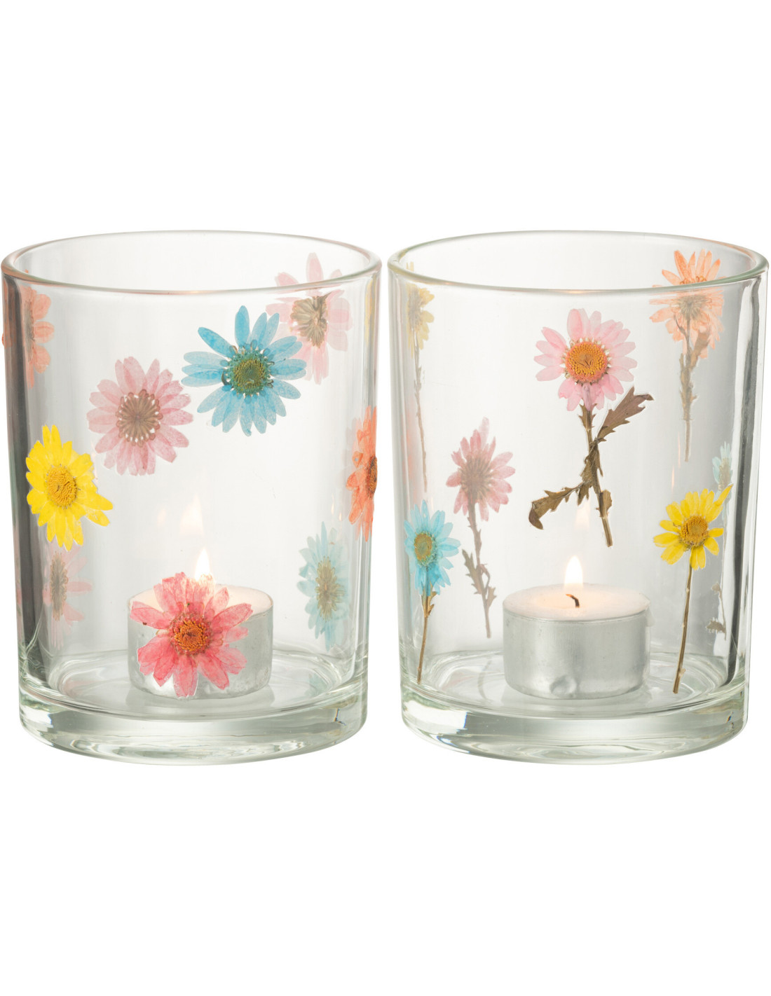 Lot de 2 Photophores Campagne chic D 10 cm Verre Transparent Motif fleurs Posy