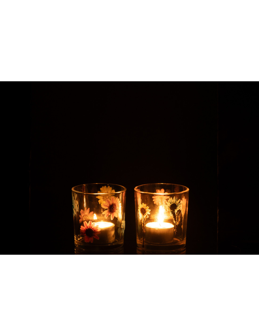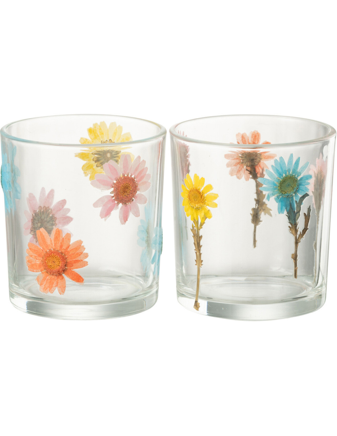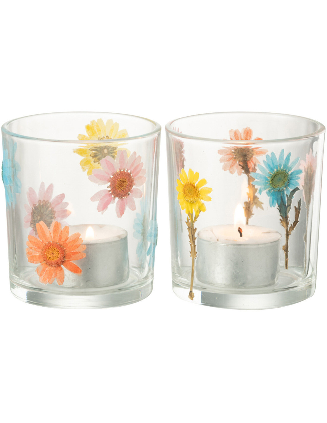 Lot de 2 Photophores Campagne chic D 7 cm Verre Transparent Motif fleurs Posy