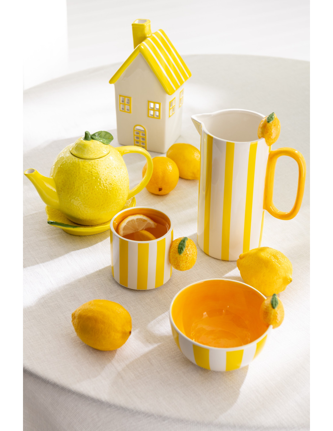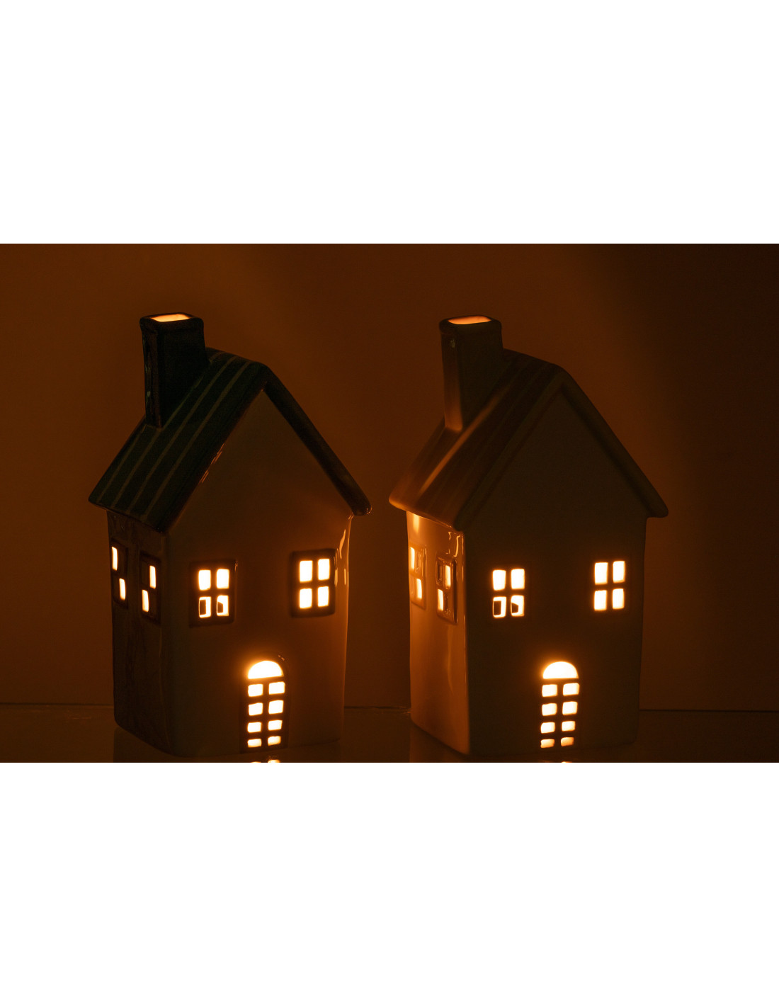 Lot de 2 Photophores design Maisons H 21 cm Dolomite Vert Jaune Blanc Motif rayures Casitia