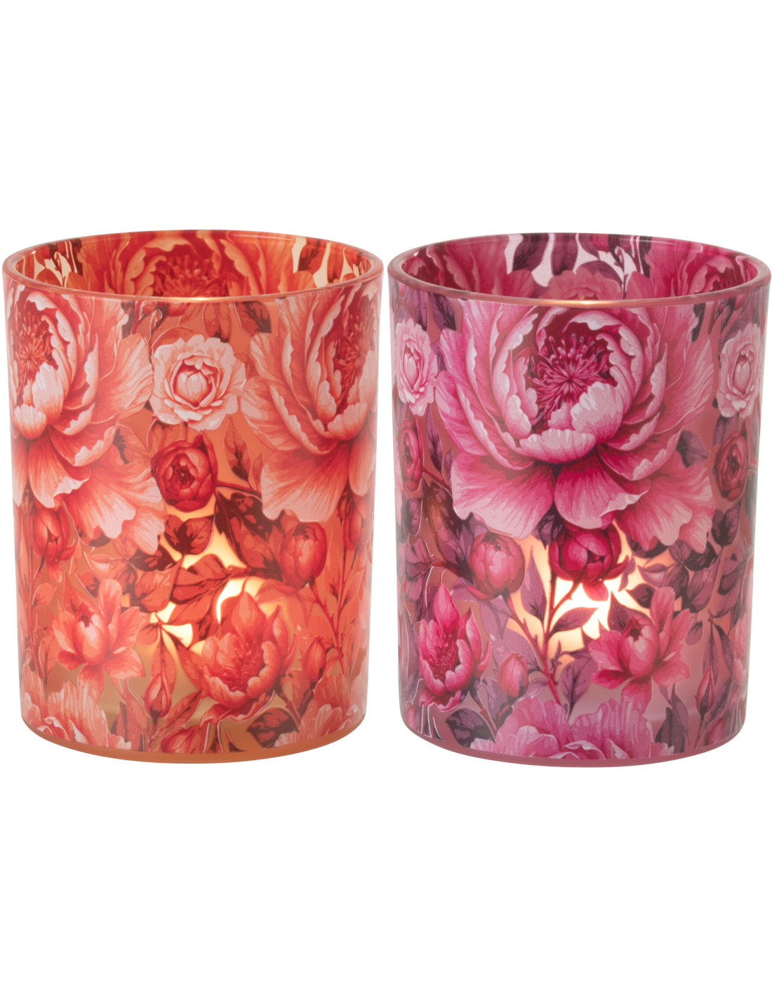 Lot de 2 Photophores shabby chic Verre Orange Rose Motif fleurs Rosaria