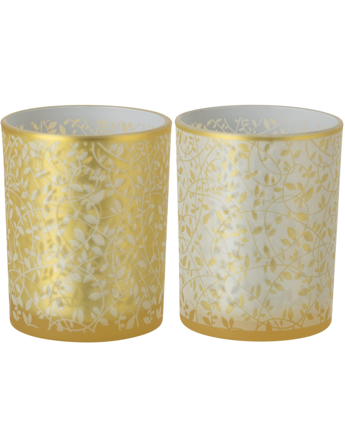 Lot de 2 Photophores style bohème Verre Blanc Ambré Motif feuilles Ambrélia