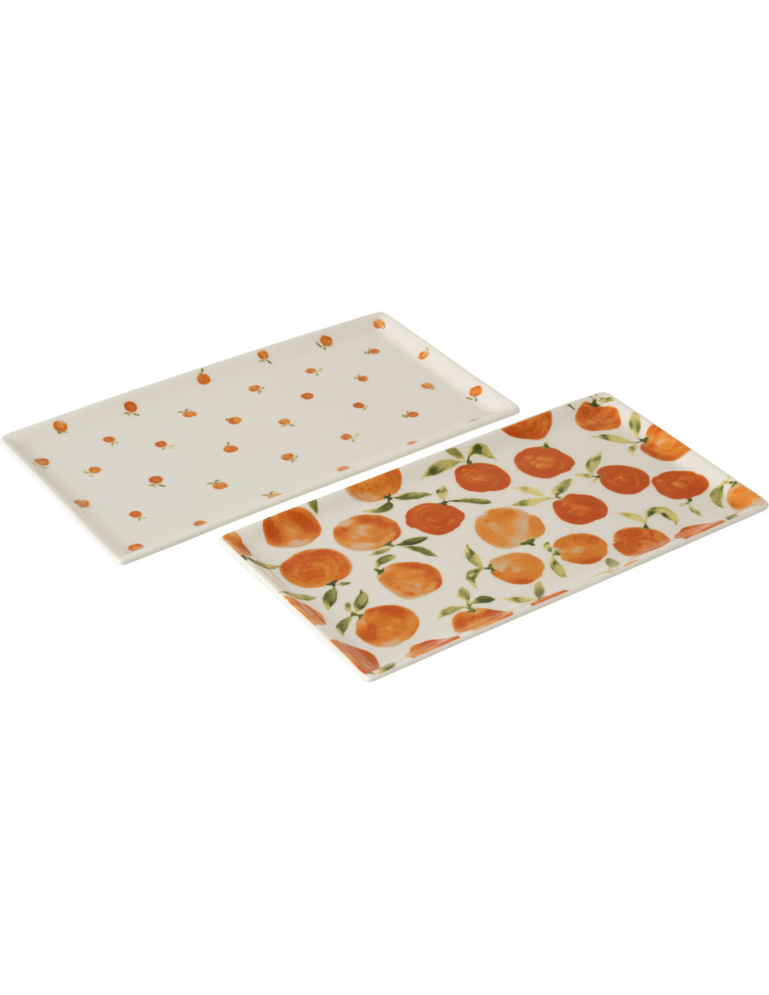 Lot de 2 Plateaux de service style méditerranéen Rectangulaire 31 cm Céramique Blanc Orange Motif oranges Fruttia