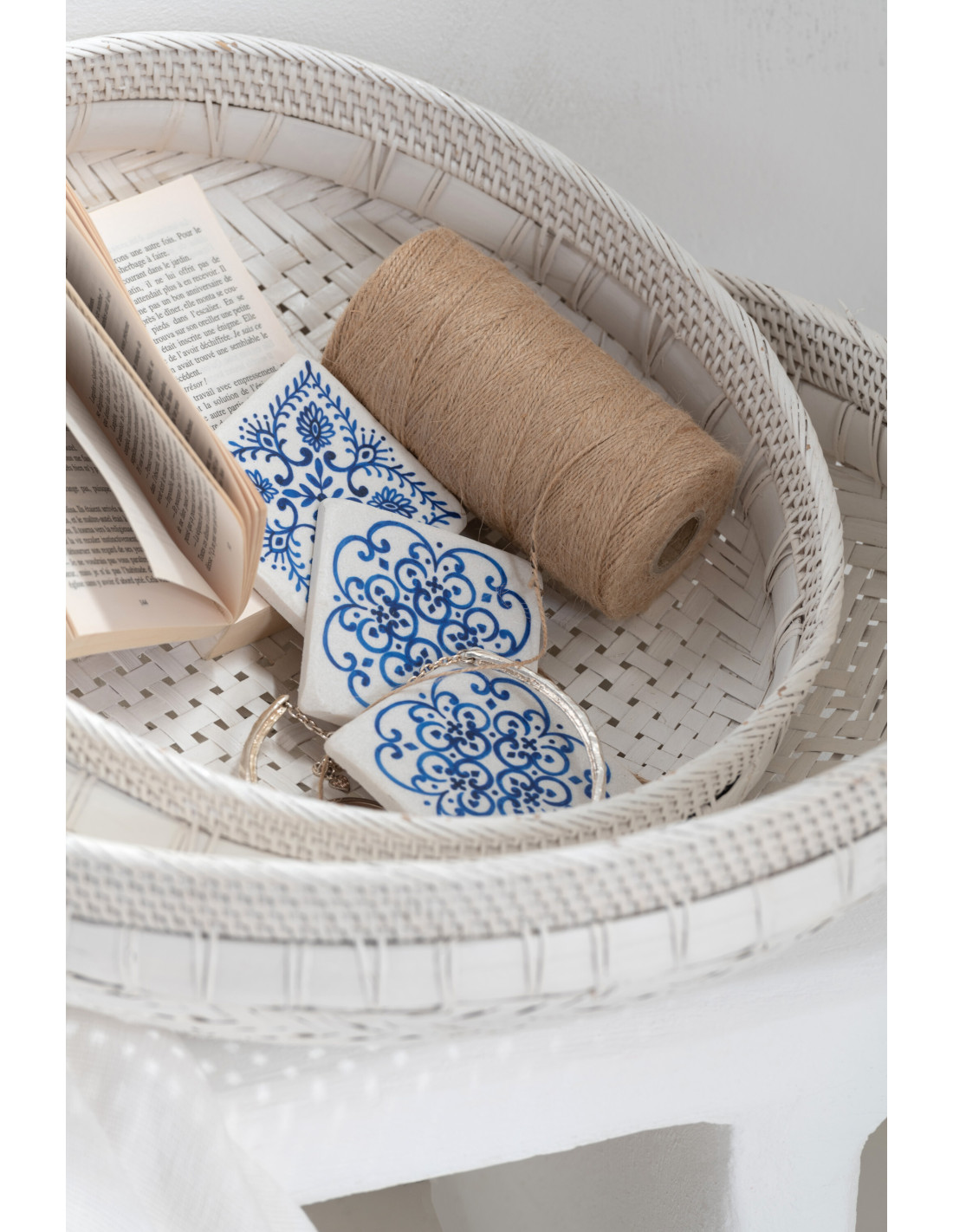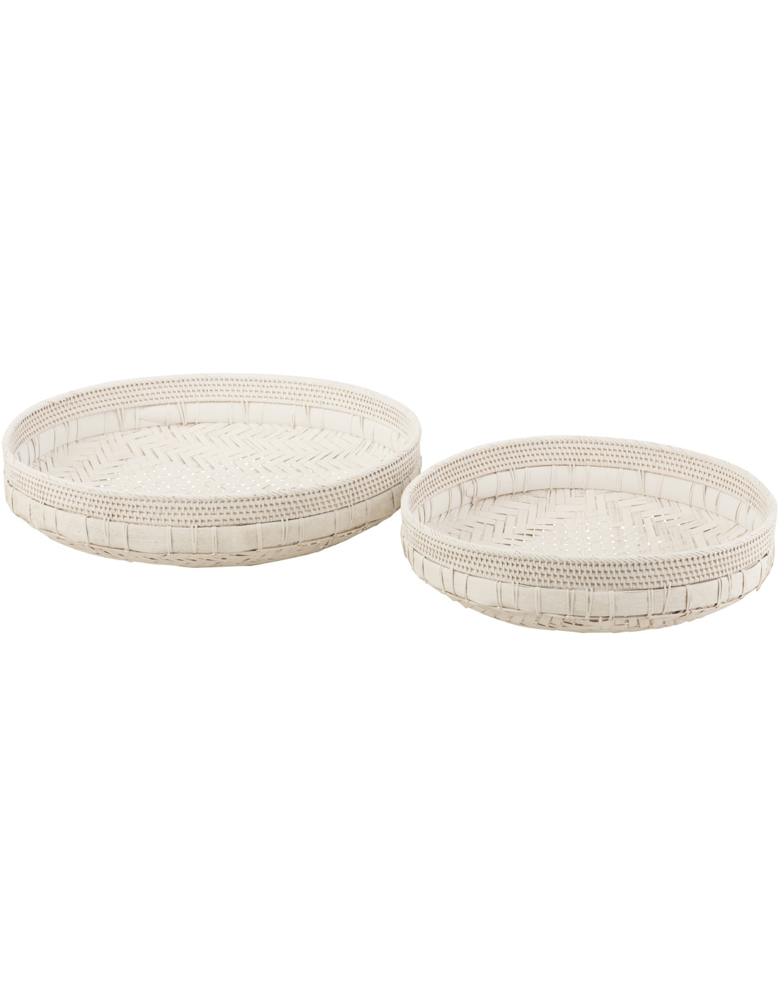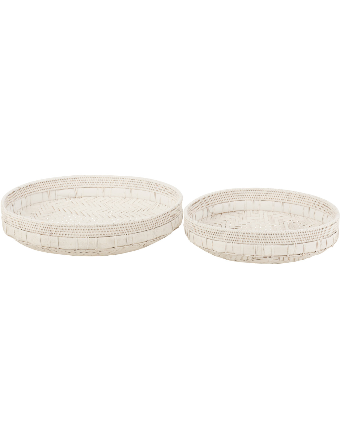 Lot de 2 Plateaux déco bord de mer Rond Rotin Blanc Tressé Tressanno