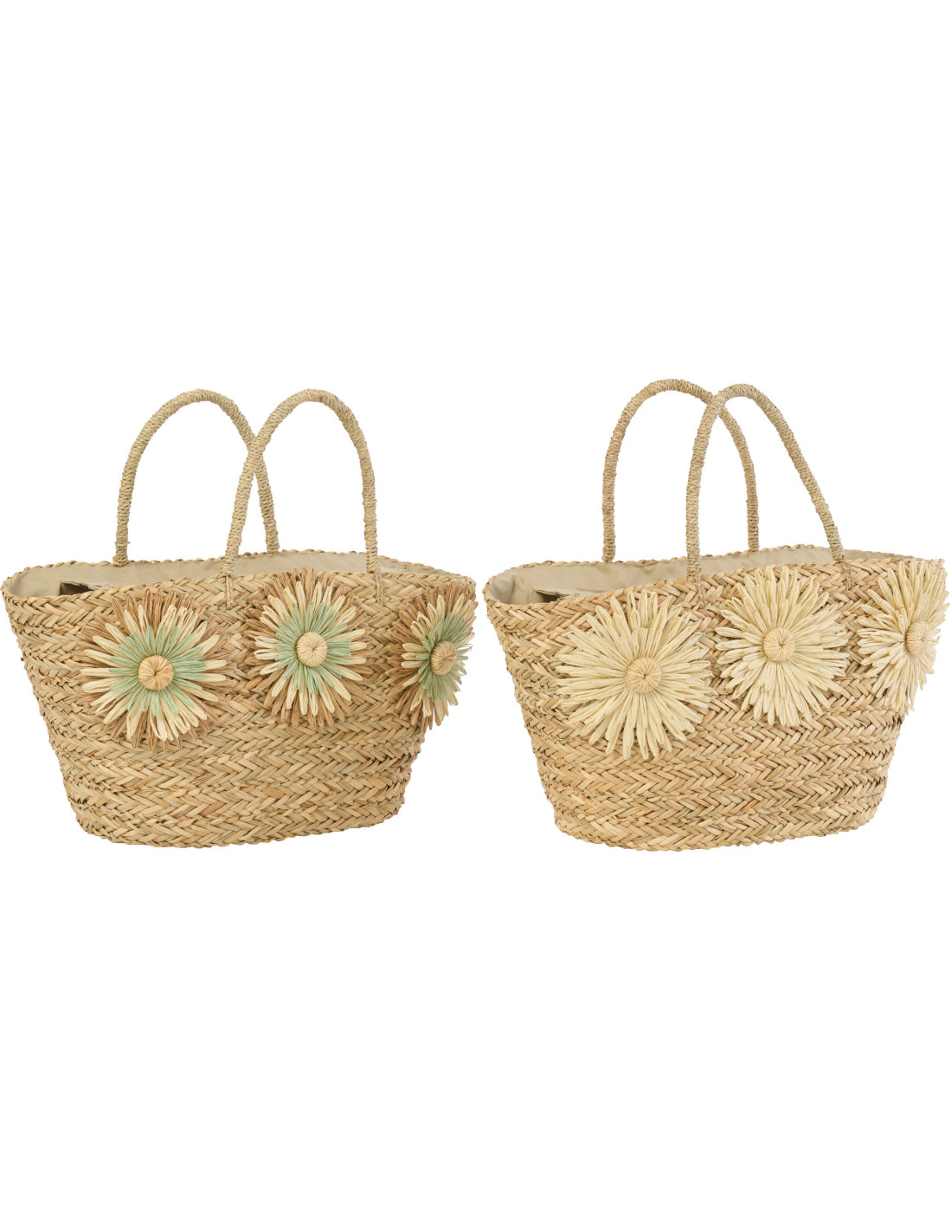 Lot de 2 Sacs Cabas Tournesols Jonc de mer Tressé Naturel Bleu azur Sunlino