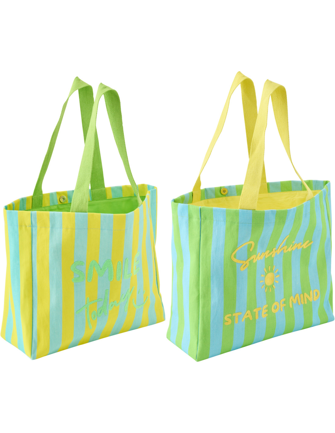 Lot de 2 Sacs de plage style riviera italienne 35 cm Coton Jaune Vert Turquoise Motif rayures La Spiaggia