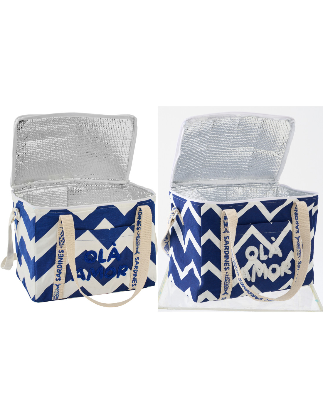 Lot de 2 Sacs repas isothermes style méditerrannéen Rectangulaire 33 cm Coton Bleu foncé Blanc Motif zigzag Ola Amor