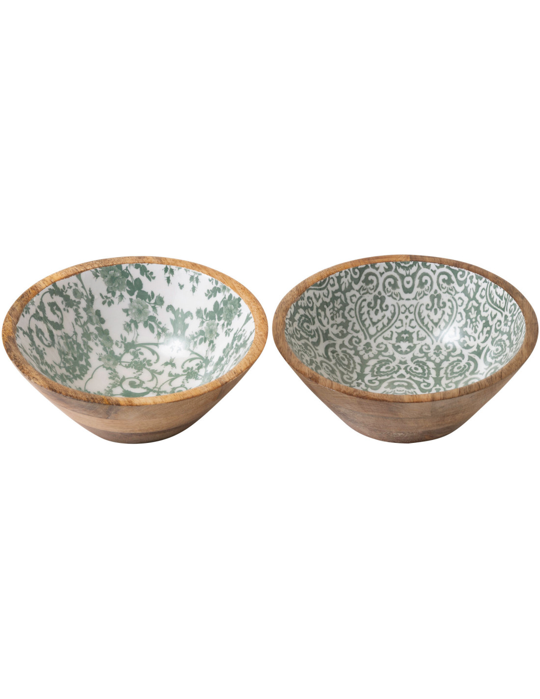 Lot de 2 Saladiers Campagne chic Rond 20 cm Bois de manguier Vert Blanc Naturel Verdeno