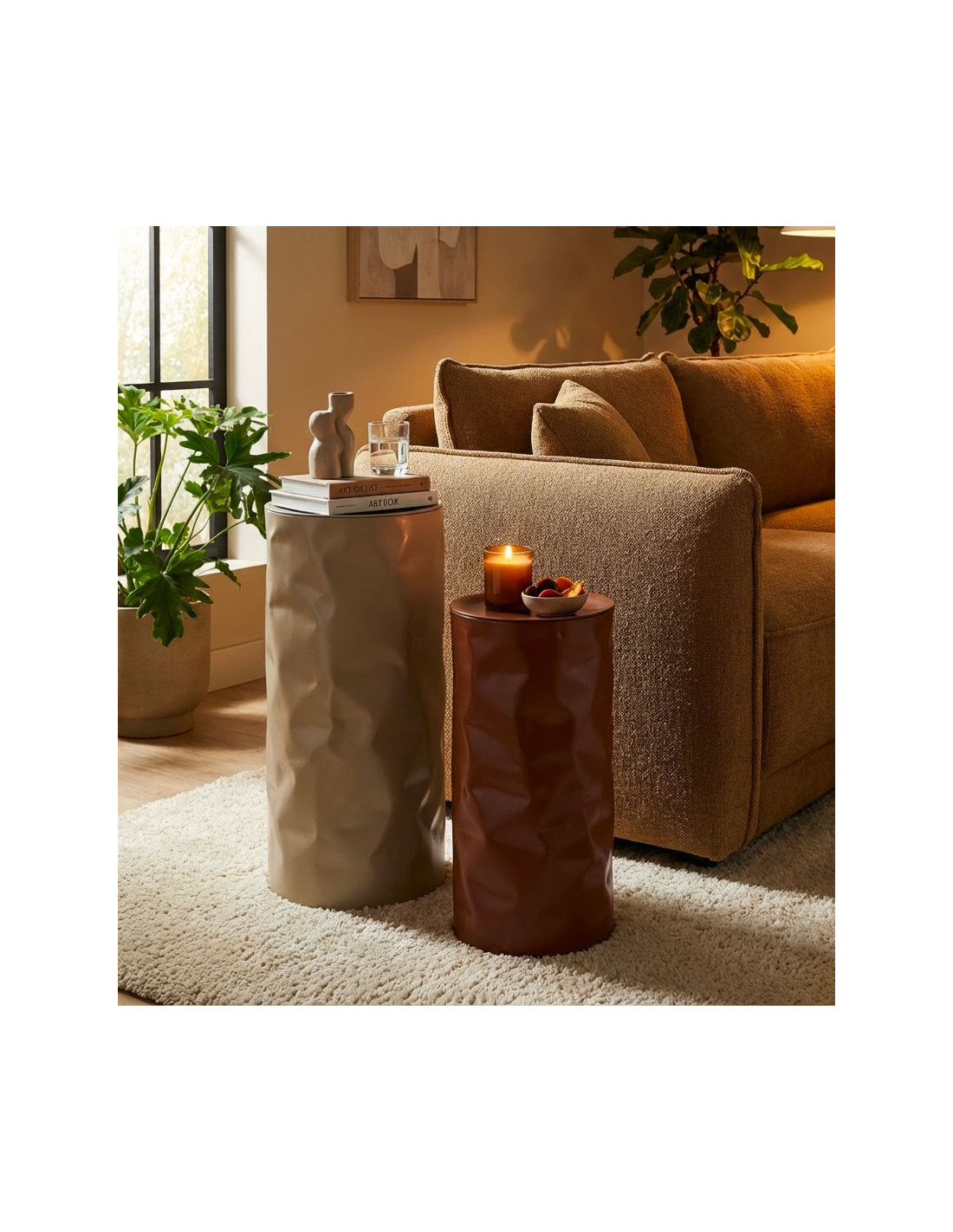 Lot de 2 Sellettes design Ronde Métal Rouge Taupe Norimberga