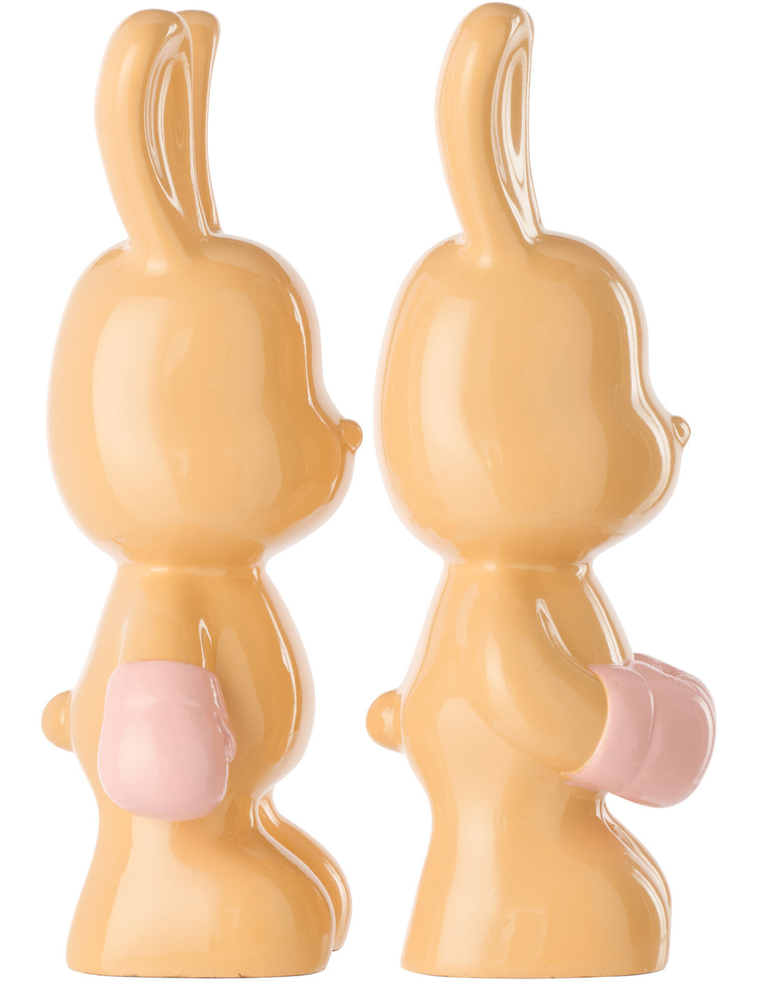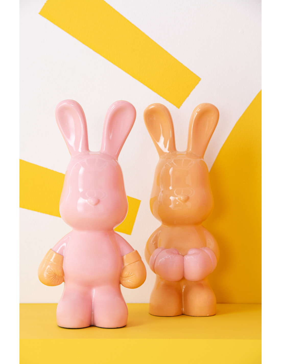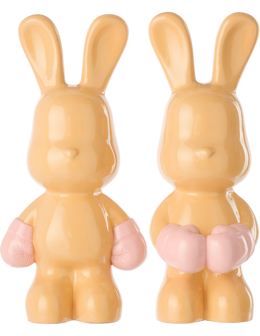 Lot de 2 Statuettes déco modernes Lapin Boxeurs H 36 cm Résine Orange abricot Iserola