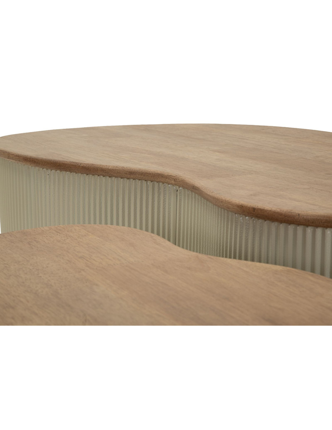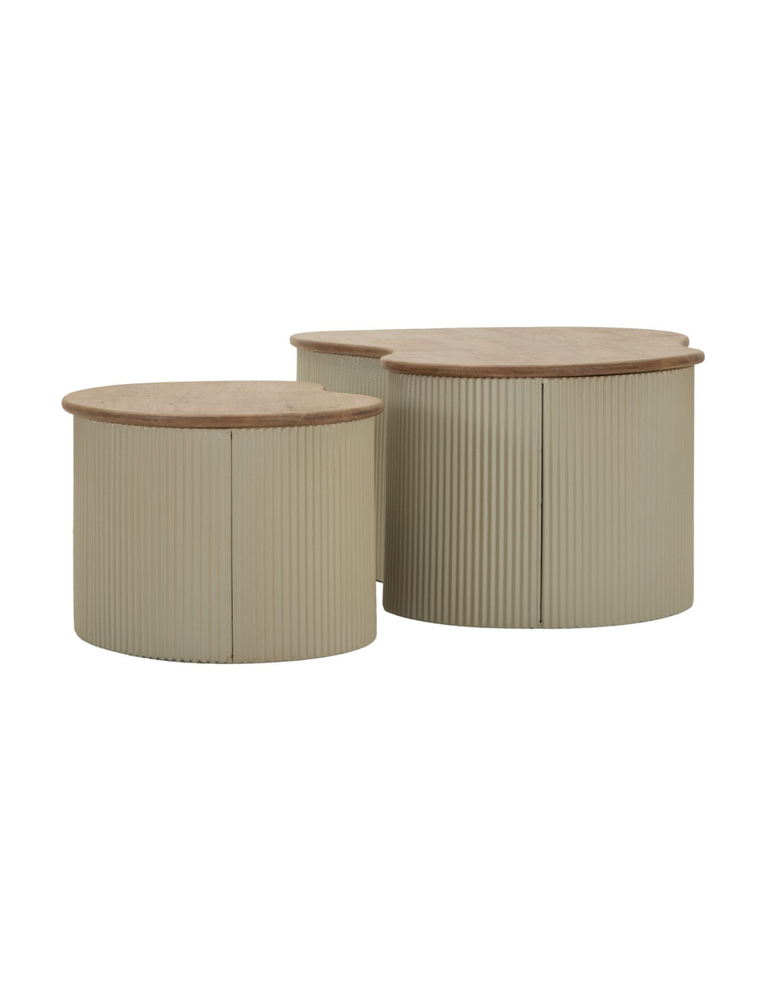 Lot de 2 Tables basses design Organique Bois d'hévéa Naturel Métal Blanc Frankfurt
