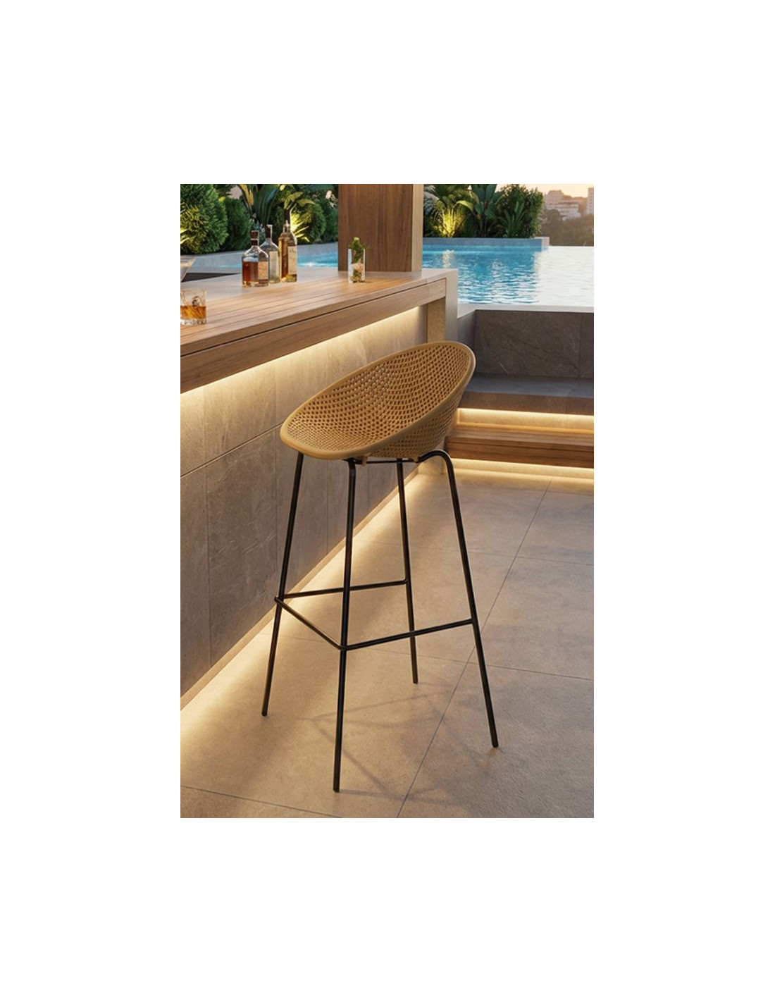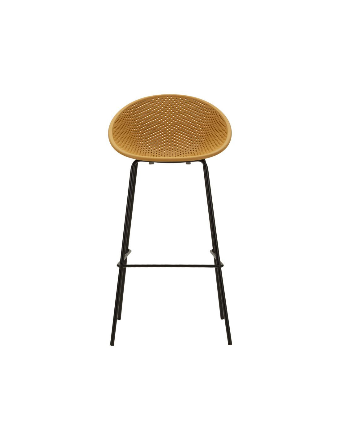Lot de 2 Tabourets de bar design Plastique Jaune moutarde Métal Noir Ibiza