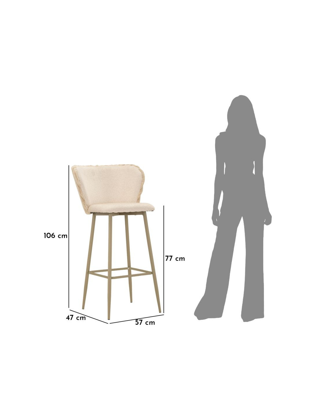 SGABELLO BAR ALASKA -B- CREMA SET 2 PZ CM 55X58X106 (ALTEZZA SEDUTA CM 77)